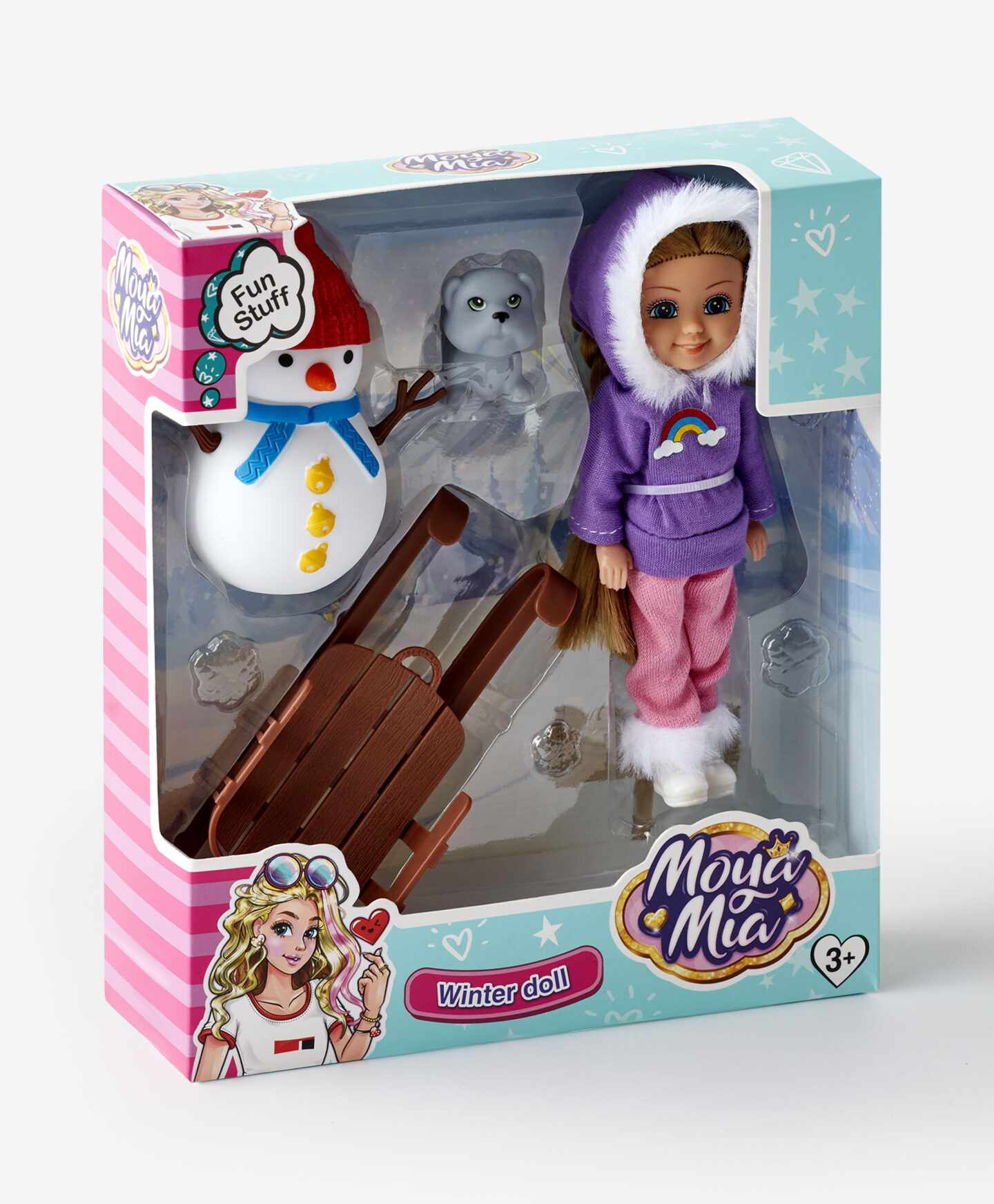 Nini Love lutka sa sankama uvodi djecu u zimsku čaroliju igre. Odjevena u toplu duksericu, spremna je za snježne avanture. Set uključuje i snješka te dodatke koji naglašavaju zimski ugođaj. Lutka savršeno dočarava atmosferu zimskih priča.