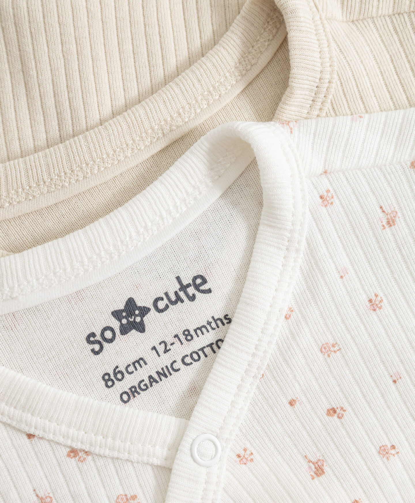 Pakovanje od 2 bodija za bebe-djevojčice, napravljenih od 100 % organskog pamuka, ima nježnu rebrastu teksturu i ističe se u garderobi vaše bebe. Preklopni kroj i kopčanje u preponskom dijelu omogućavaju jednostavno presvlačenje. Dva uzorka u setu omogućavaju kreiranje raznih kombinacija idealnih za svakodnevno nošenje.