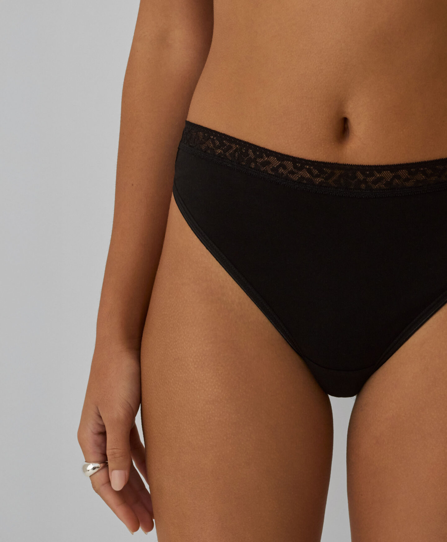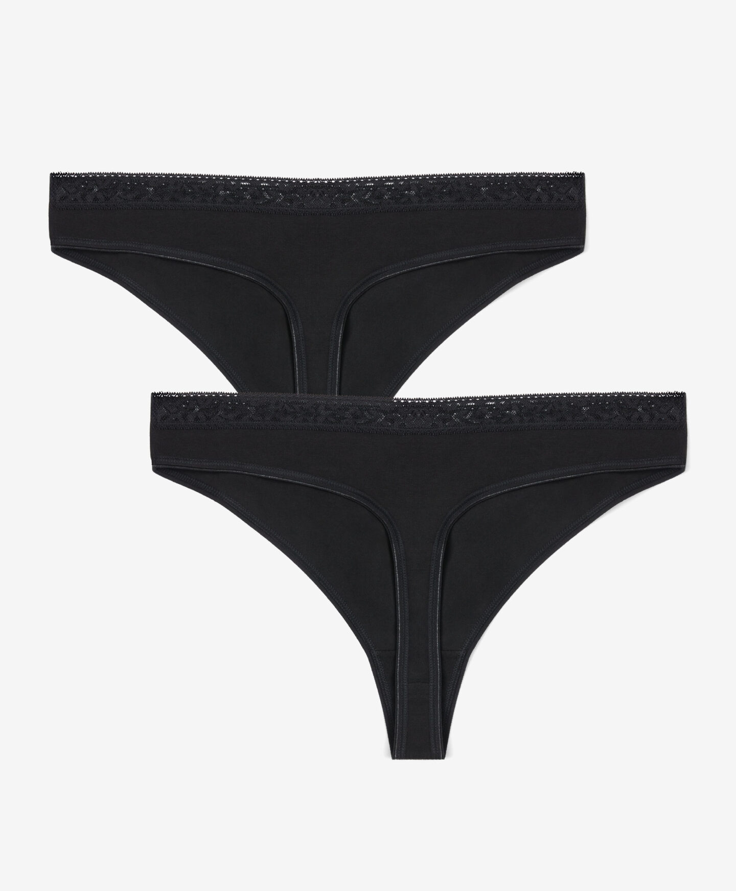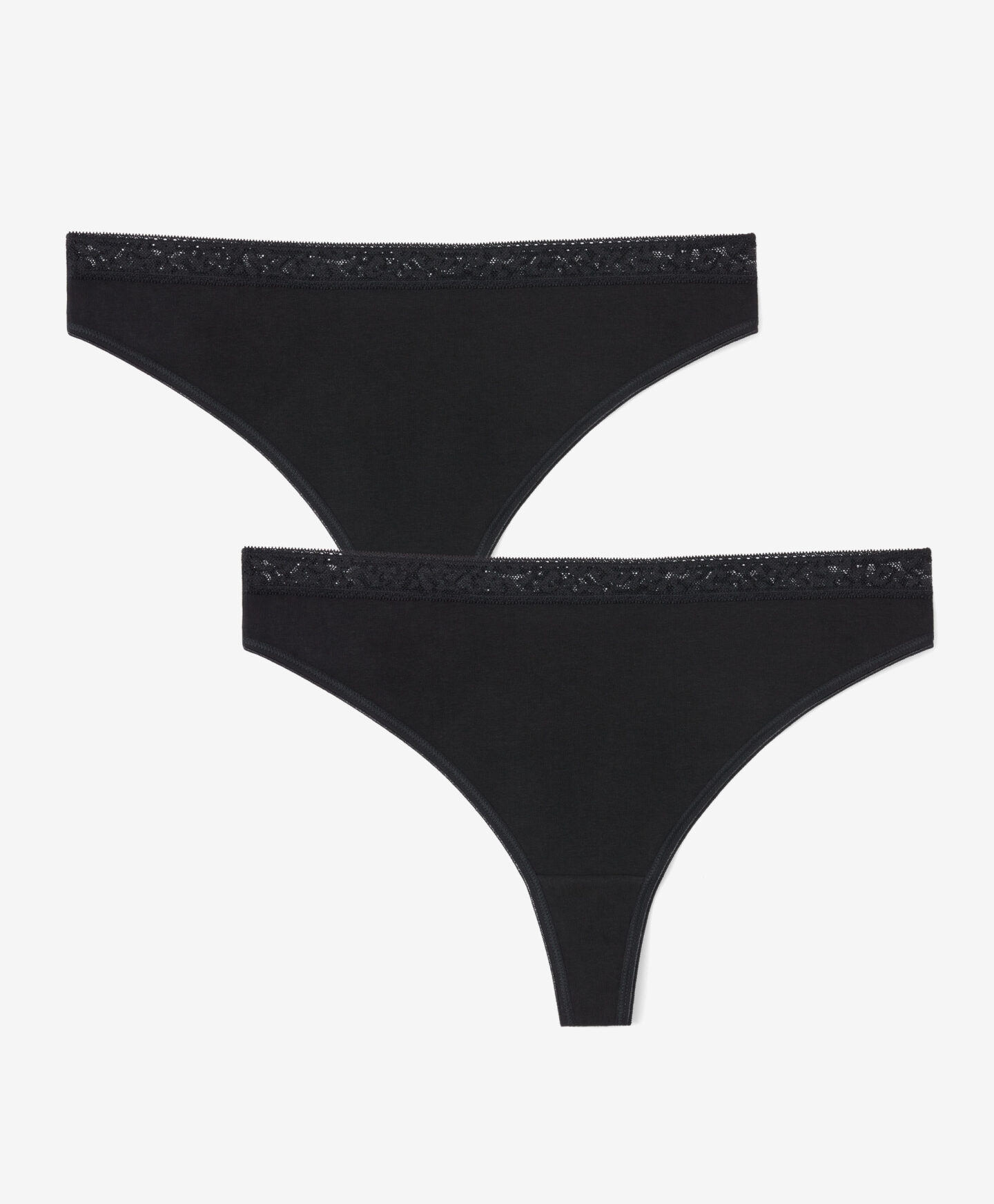 Pakovanje od 2 komada tangi s čipkastim pojasom za žene savršen je izbor za svakodnevno nošenje. Visok udio pamuka i dodatak elastina osiguravaju udobnost. Model je visokog kroja i ne ocrtava se ispod odjeće. Mekana, prijatna tkanina savršeno pristaje tijelu.