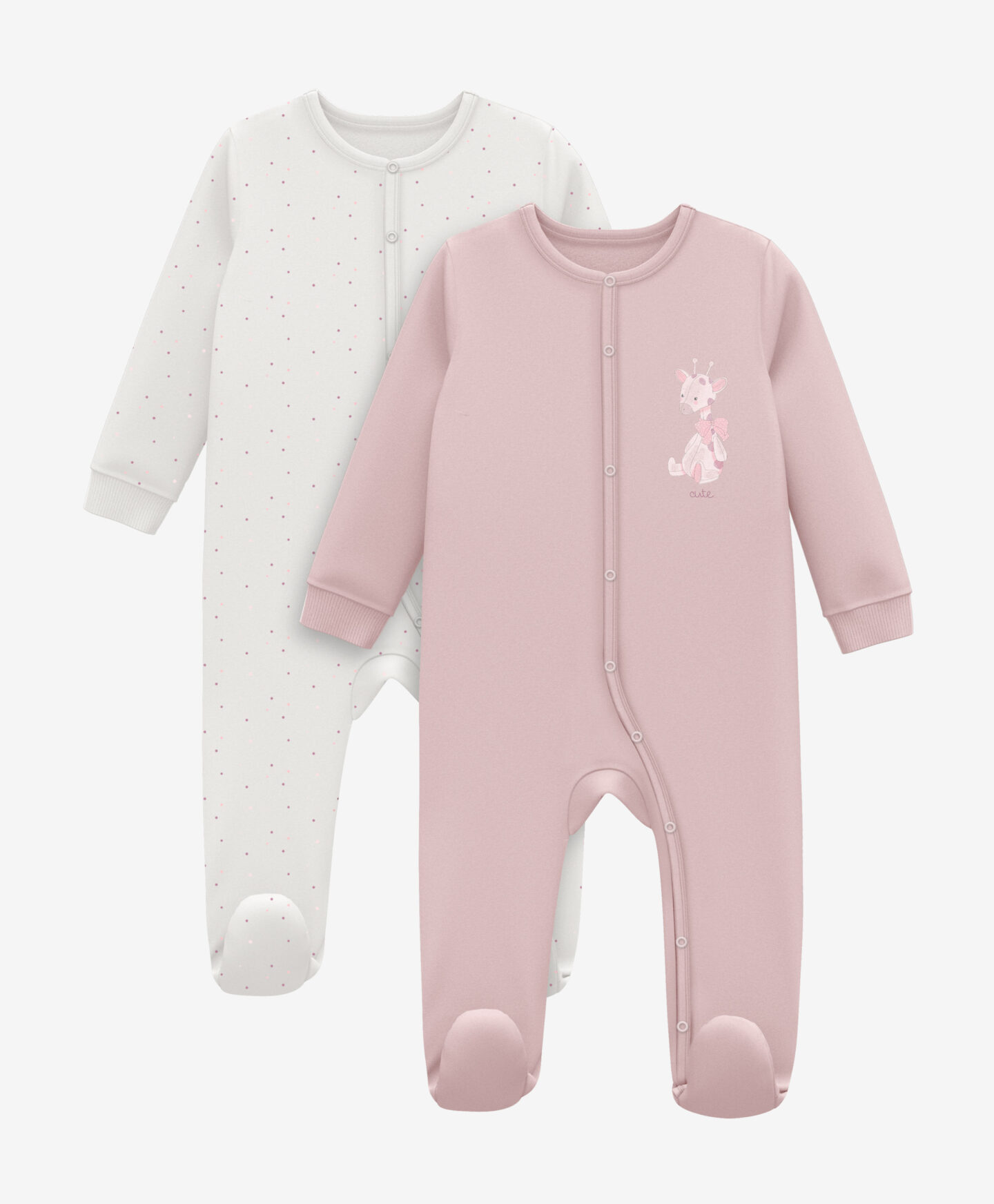 Pakovanje od 2 kombinezona s uzorkom žirafe za bebe-djevojčice 100% pamuk