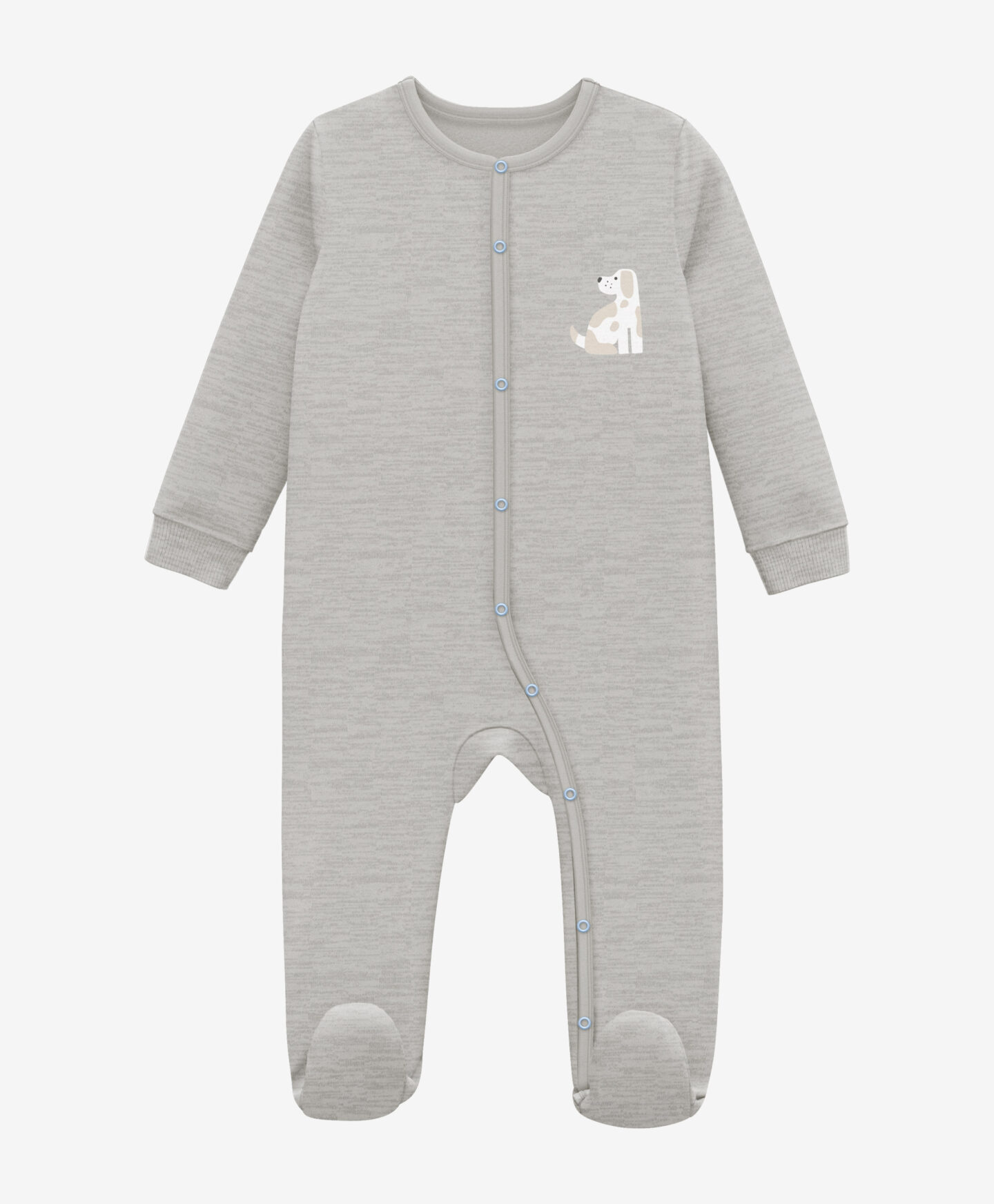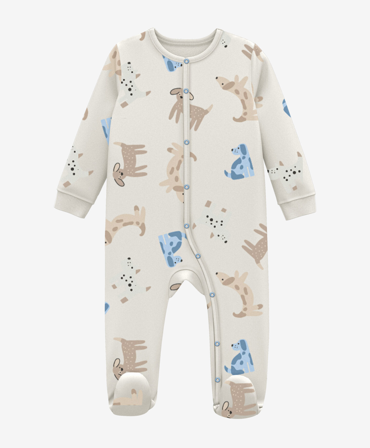 Pakovanje od 2 kombinezona za bebe-dječake, napravljena od 100% pamuka, idealan je izbor za nježnu bebinu kožu. Potpuno pamučni materijal pruža udobnost tokom igre i drijemanja. Praktično kopčanje duž cijelog kombinezona čini oblačenje i presvlačenje bebe brzim i jednostavnim. Uzorak pasa dodaje poseban šarm i razigran karakter. U ponudi su dostupni različiti uzorci.