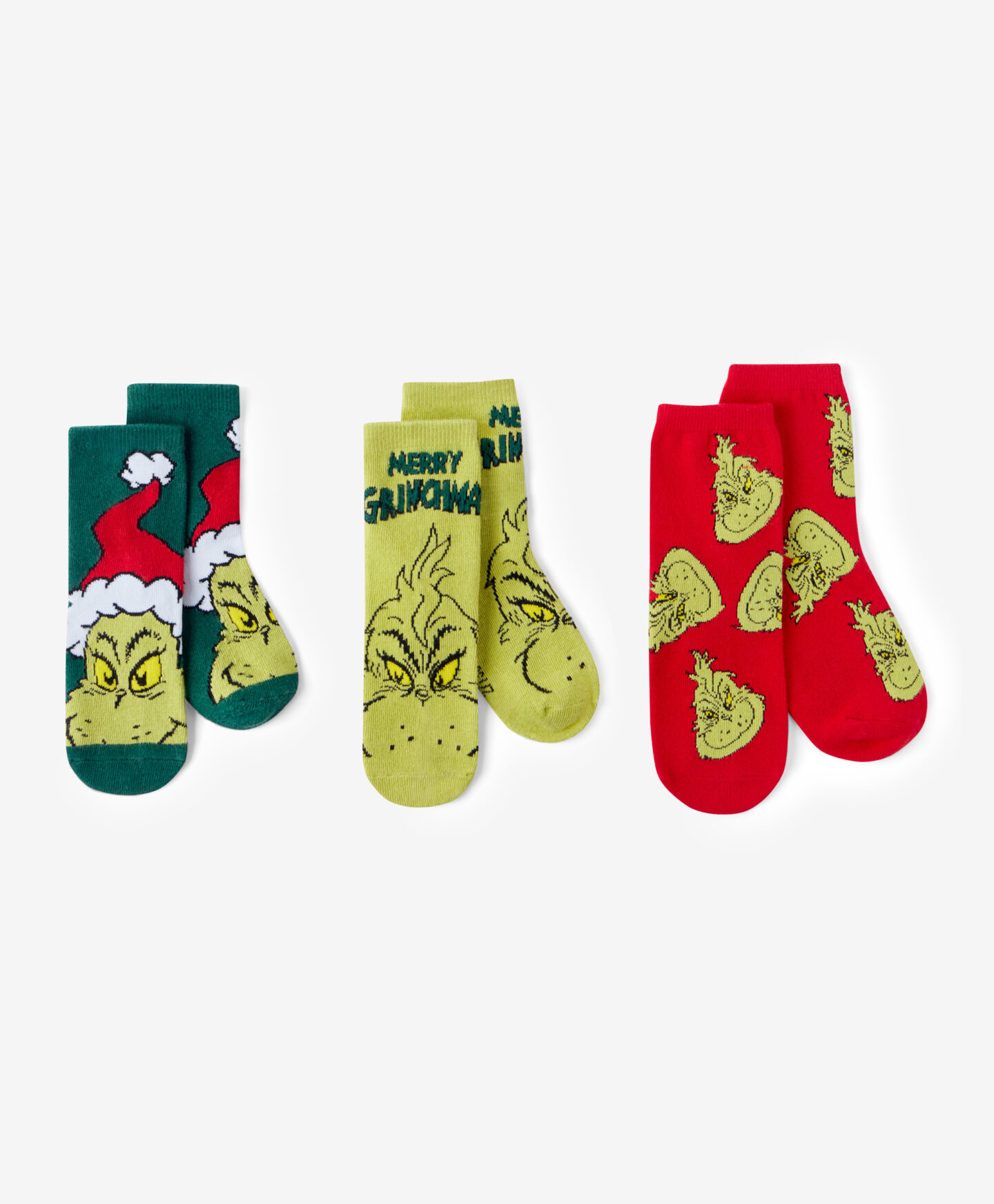 Pakovanje od 3 para čarapa s Grinch licencom za dječake savršen je način da se u ormar unese malo prazničnog humora. Svaki par čarapa ukrašen je motivima Grincha, što im daje jedinstven i zabavan karakter. Napravljene od mekanog materijala, pružaju udobnost tokom cijelog dana.