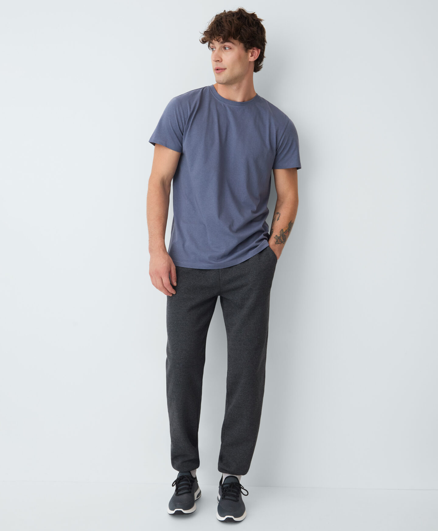 Plava majica kratkih rukava za muškarce, napravljena od 100% pamuka, osnovni je komad svakodnevnih kombinacija. Lagana je, mekana na dodir i prozračna. Savršena je za nošenje ispod dukserice ili džempera kada stignu prve jesenje svježine. Glatka završna obrada i prigušeni tonovi pružaju potpunu slobodu u kombinovanju s ostalim odjevnim komadima iz vaše garderobe.
