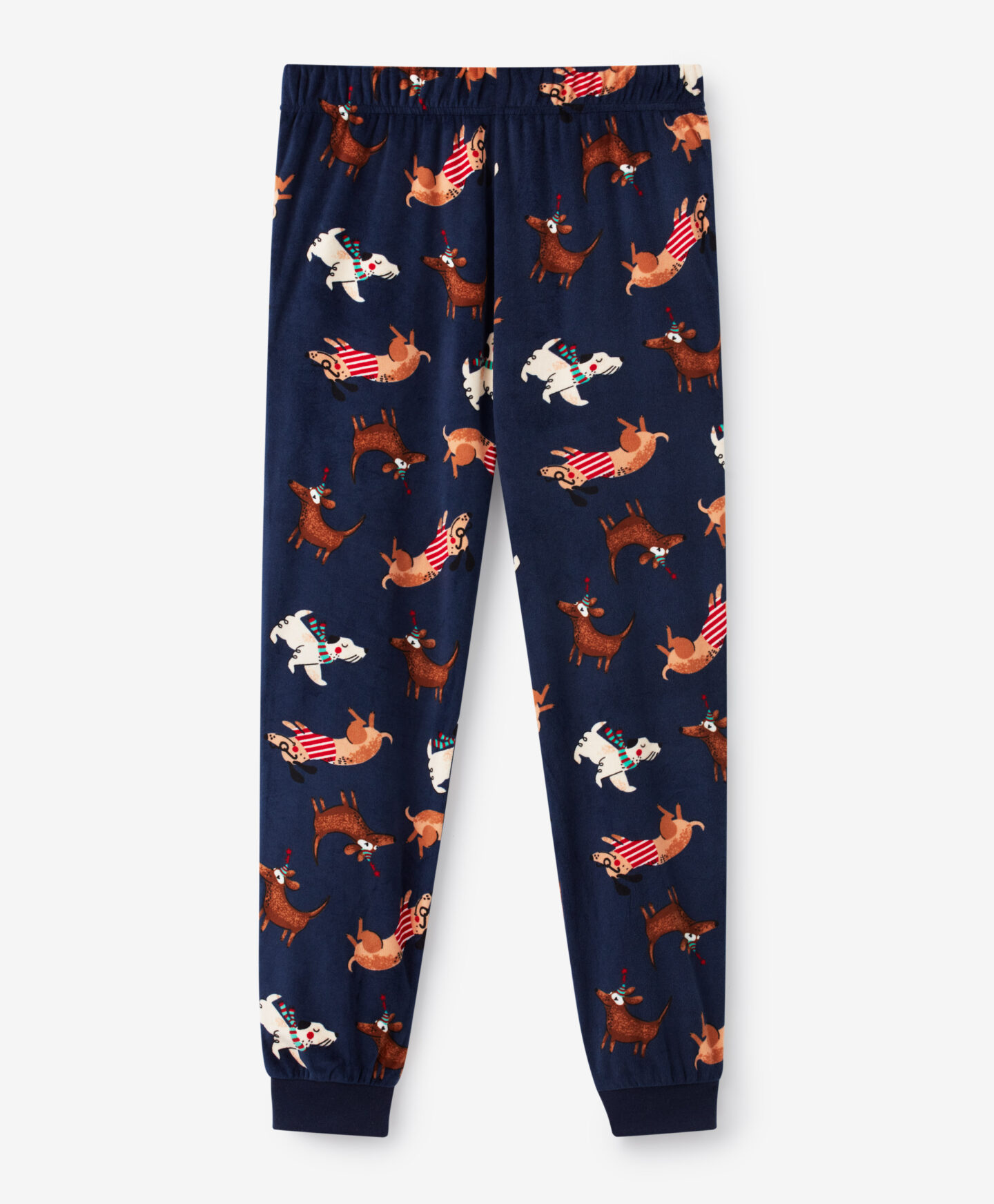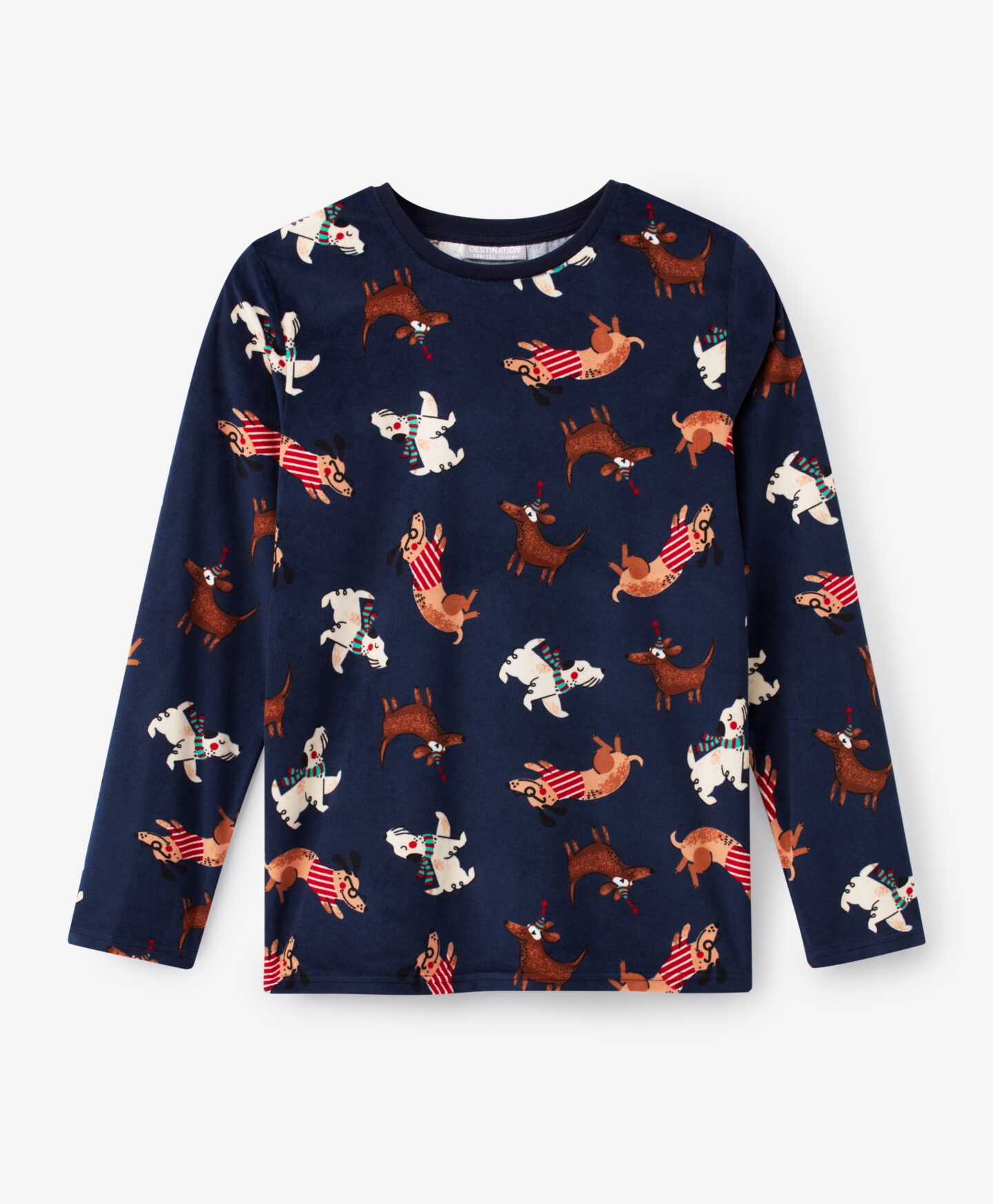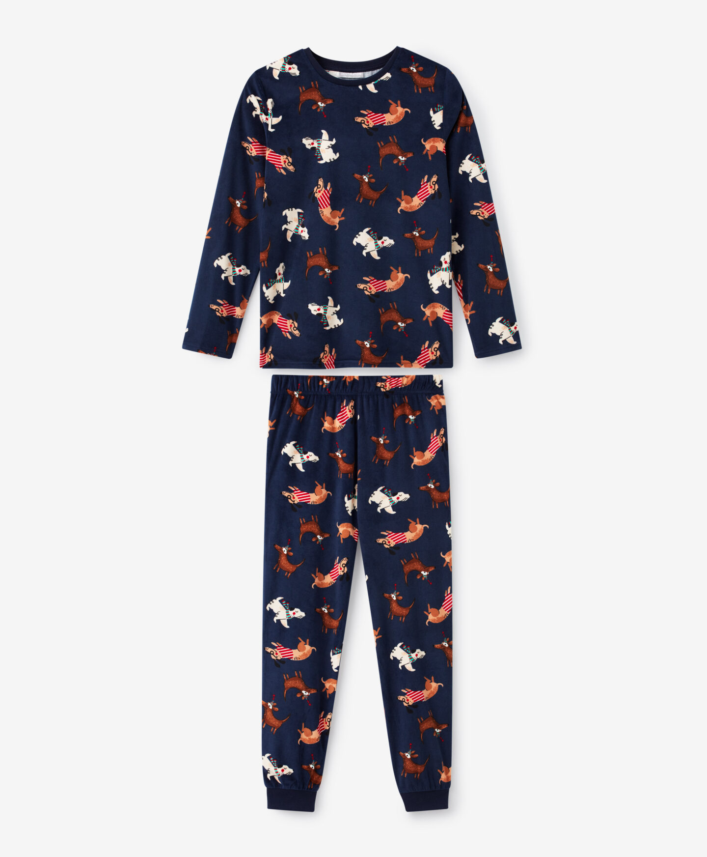 Plišana pidžama s psima za dječake pruža udobnost tokom spavanja i slobodu kretanja. Napravljena od mekanog i prijatnog pliša, idealna je za hladnije noći. Garantuje toplinu i ugodnost. Razigrani motivi s psima učinit će da je svaki dječak rado obuče prije spavanja.
