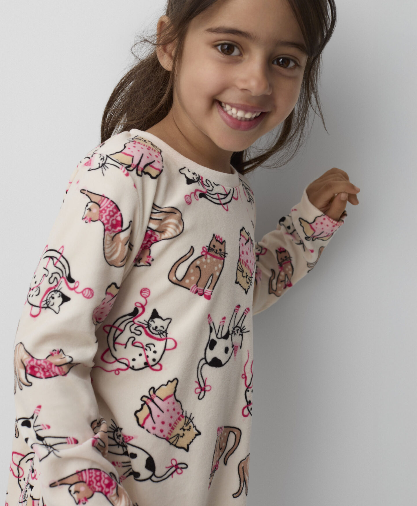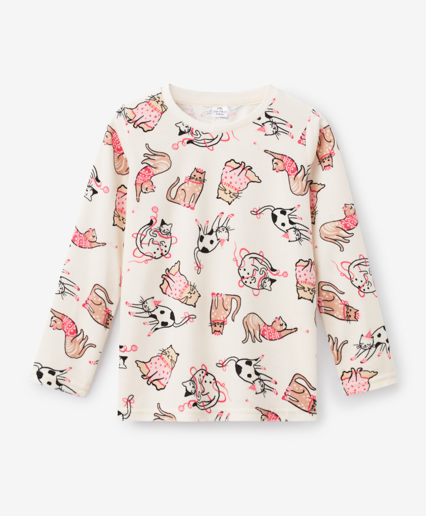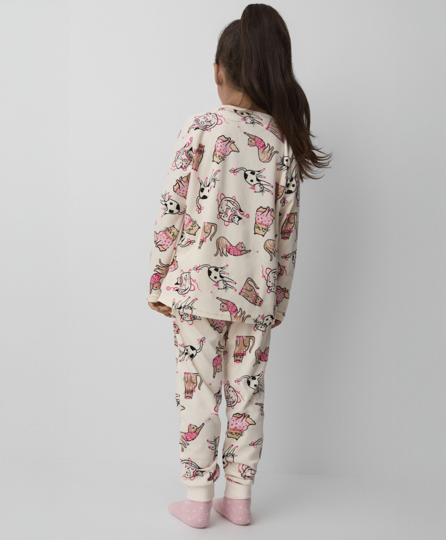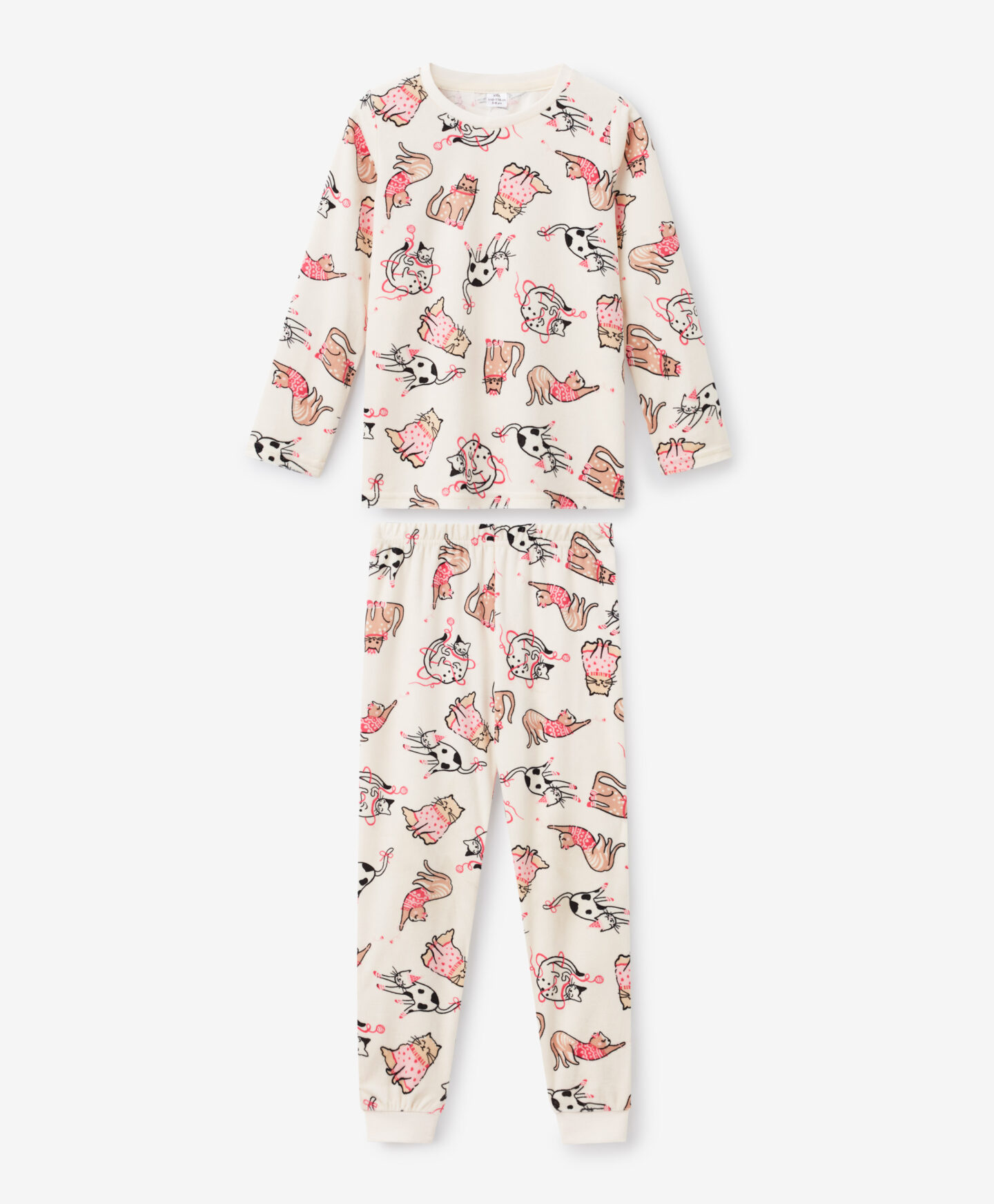 Plišana pidžama s mačkama za djevojčice savršen je izbor za male ljubiteljice ovih životinja. Napravljena od mekanog i prijatnog pliša, pruža udobnost tokom spavanja i slobodu kretanja. Razigrani motivi s mačkama učinit će da je svaka djevojčica rado obuče prije spavanja. Idealna za hladnije noći, pruža toplinu i udobnost.
