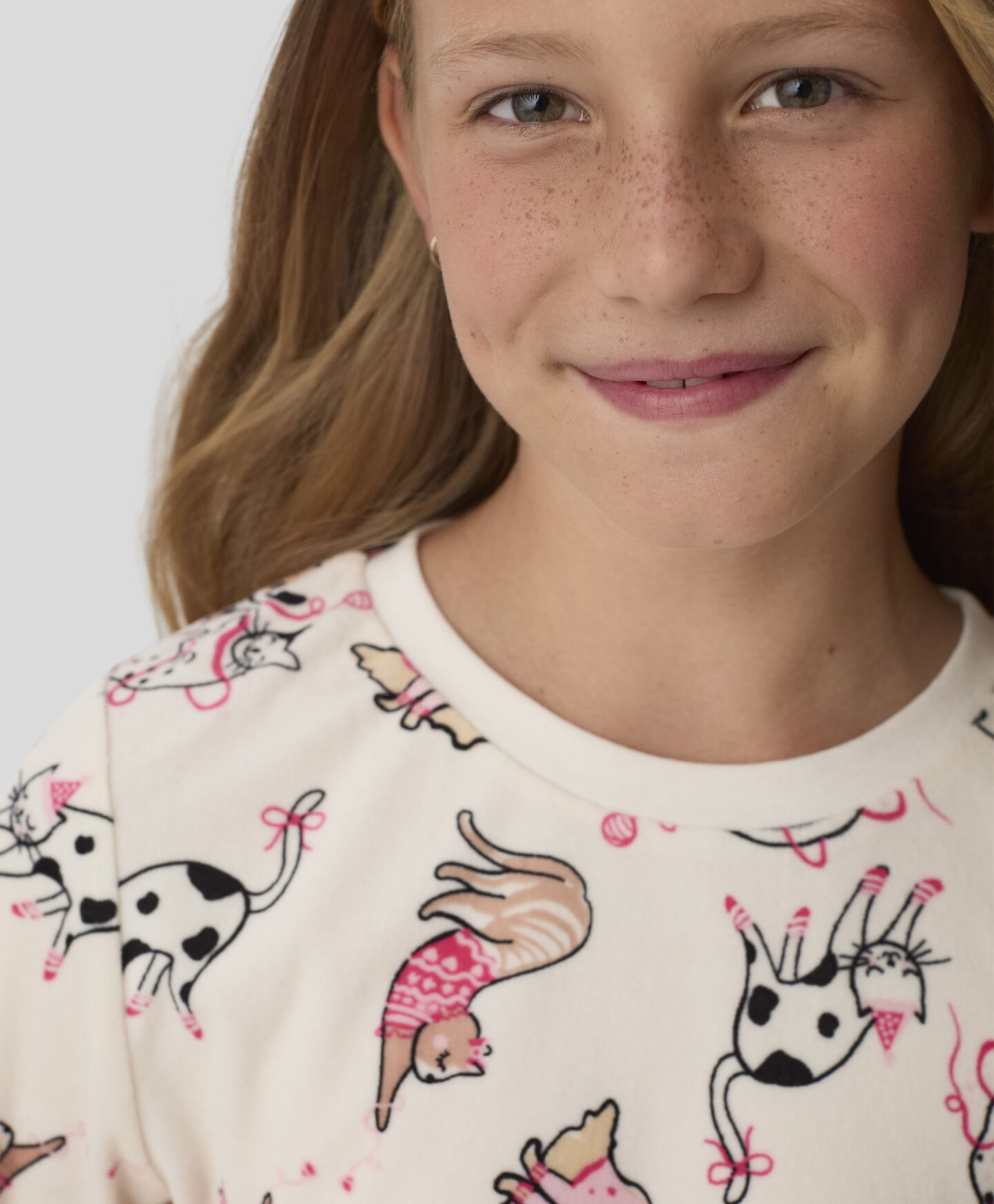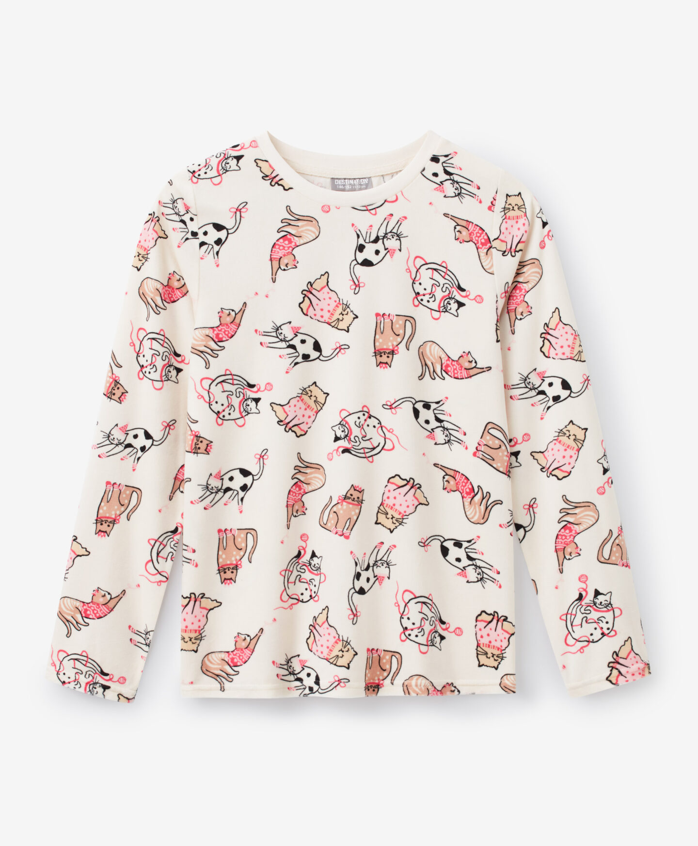 Plišana pidžama s mačkama za djevojčice pruža udobnost tokom spavanja i slobodu kretanja. Napravljena od mekanog i prijatnog pliša, osigurava toplinu i ugodnost. Razigrani motivi s mačkama učinit će da je svaka djevojčica rado obuče prije spavanja. Idealna za hladnije noći i odličan izbor za ljubiteljice mačaka.