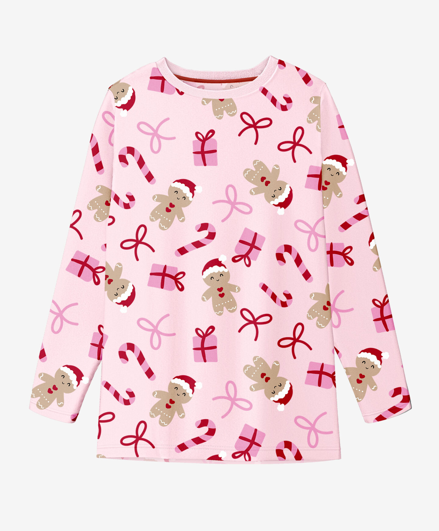 Plišana pidžama s uzorkom medenjaka, poklona i mašnica za žene odličan je izbor za poklon. Set uključuje majicu dugih rukava i hlače napravljene od mekanog, toplog pliša, što je čini savršenom za zimske noći.