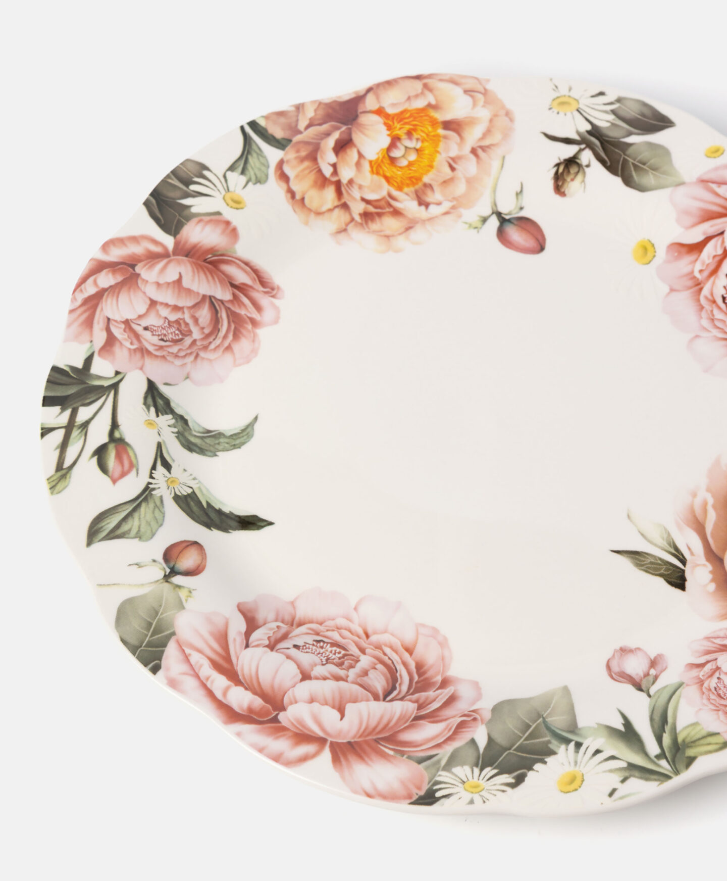 Plitki tanjir s cvjetnim uzorkom napravljen je od izdržljivog New Bone China porcelana sa suptilnim sjajem i kremastom bojom. Odličan je izbor za elegantno posuđe po razumnoj cijeni. U ponudi su dostupne i zdjele i čajnik u istom dizajnu.