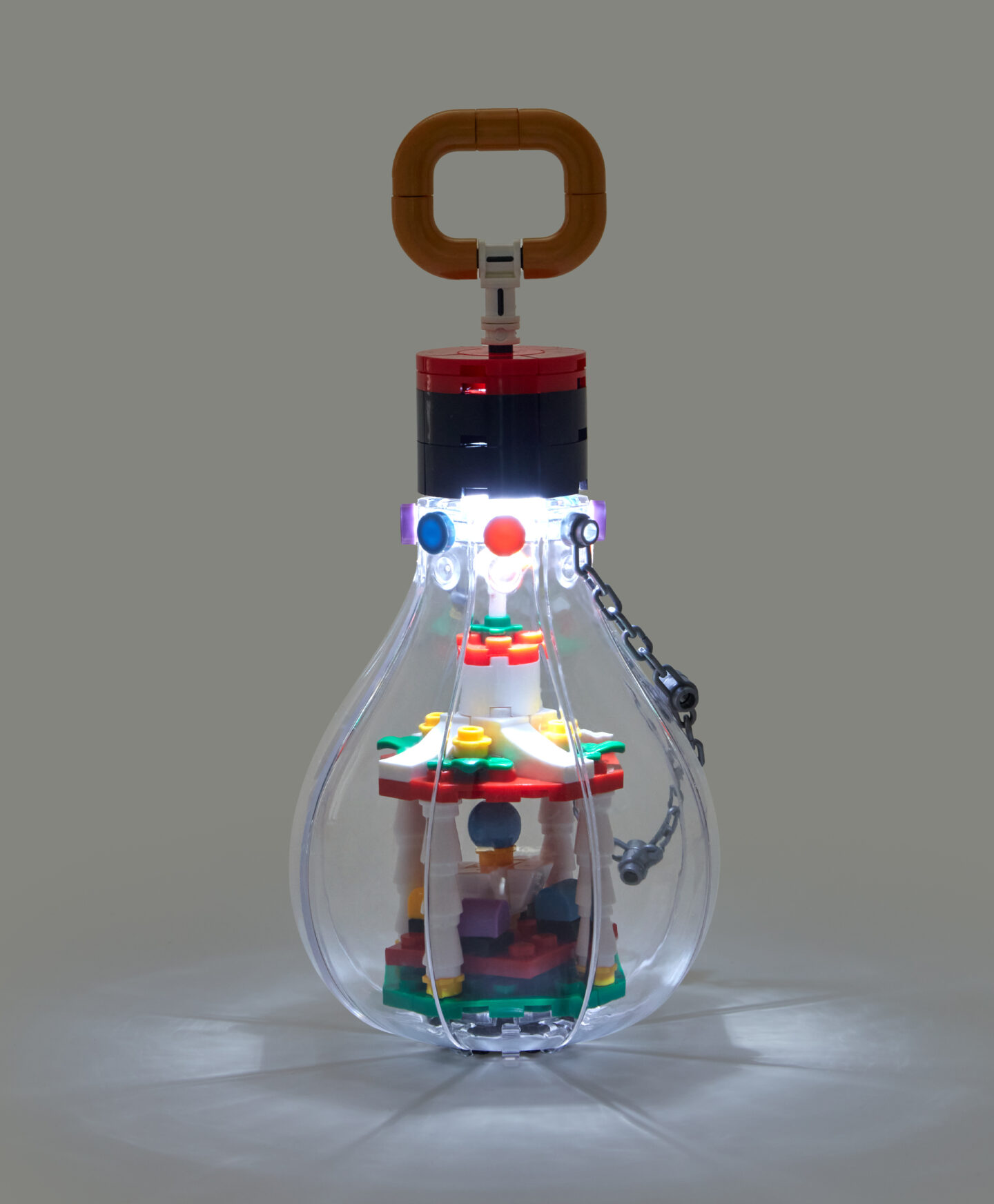 Praznična sijalica s kućicom unosi duh zimskog sela u vaš prostor. Minijaturna kućica unutar sijalice svijetli nježnim svjetlom, stvarajući čaroban efekat. Ovaj ukras savršen je za praznični sto, komodu ili jelku.