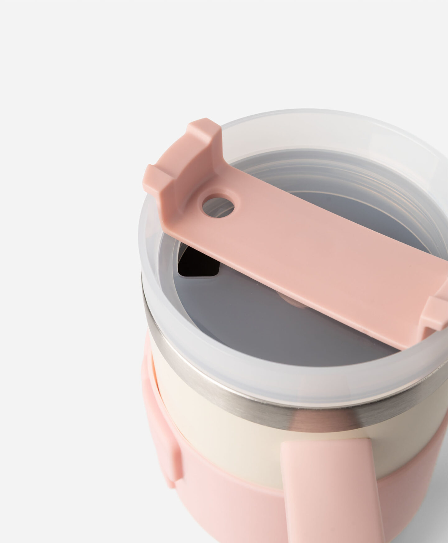 Prenosna termo šolja sa slamkom i ručkom idealan je pratilac na putovanjima. Velika zapremina od 1200 ml omogućava da uvijek imate omiljeni napitak uz sebe. Odlična je za kancelariju, školu, u pokretu ili za opuštanje kod kuće. Praktična slamka omogućava lako ispijanje, a čvrst poklopac sprječava prosipanje. Ukrasna mašna daje dodatni šarm.