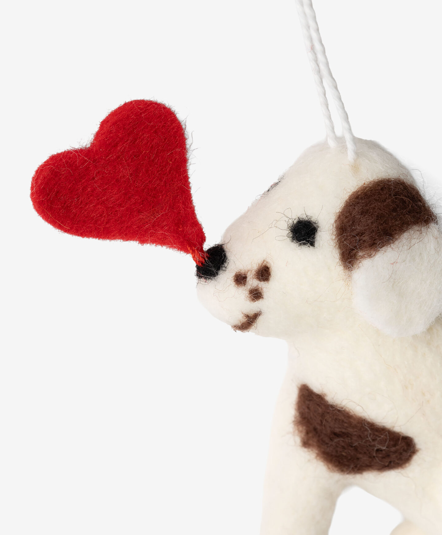 Privjesak od filca u obliku psa koji drži srce šarmantan je ukras za Dan zaljubljenih. Mala veličina i mekana tekstura čine ga savršenim za kačenje na ključeve, torbe, ruksake ili pernice. Dodaje dašak boje svakom trenutku i pomaže u izražavanju osjećaja. U ponudi su dostupna dva dizajna.