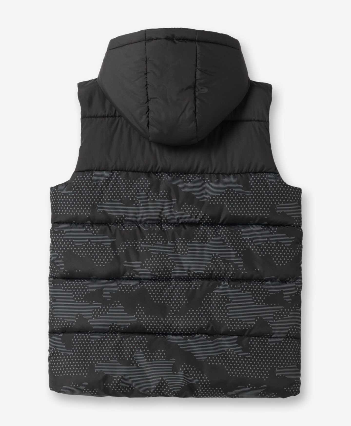 Maskirni prsluk za dječake savršen je dodatak dječijoj garderobi. Odlično izgleda preko gornjeg dijela trenerke, džempera ili majice dugih rukava. Duboki džepovi grijat će ruke u hladnijim danima, a kapuljača će štititi glavu od vjetra. Prsluk je lagan, topao i vrlo svestran. Idealan je za školu i vikend aktivnosti na otvorenom.