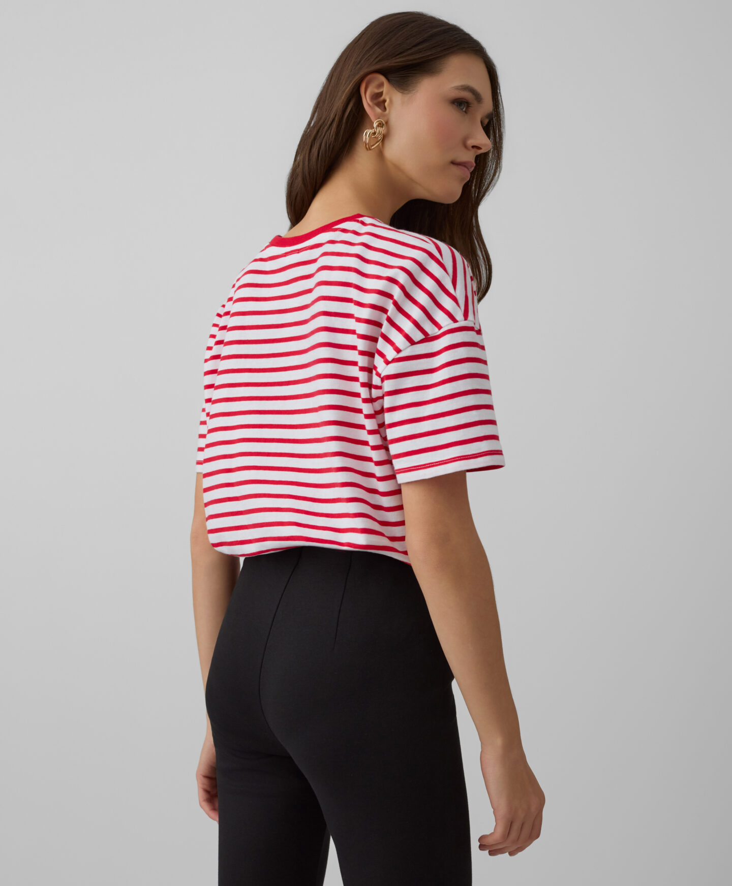 Prugasta majica kratkih rukava za žene, napravljena od 100% pamuka, predstavlja spoj stila i udobnosti. Prozračan materijal čini je savršenom za razne kombinacije.