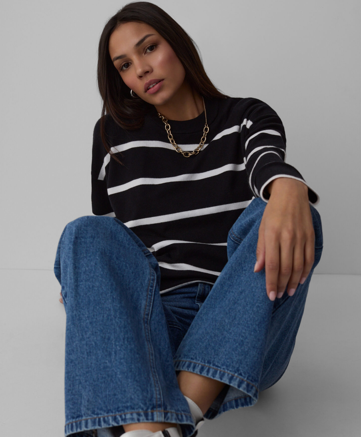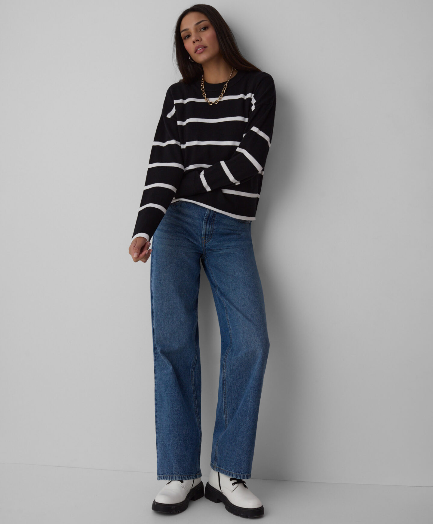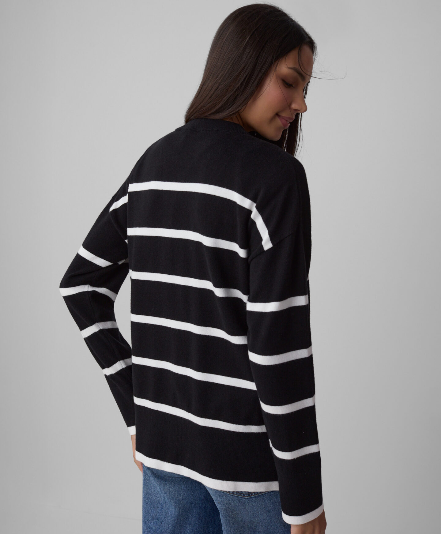 Prugasti džemper s viskozom za žene odlično izgleda u kombinaciji s jeansom. Lagani je komad, prijatan na dodir i savršen za svakodnevno nošenje. Uparen s elegantnim dodacima, odličan je izbor za posao, druženja ili formalnije prilike. Bezvremenski prugasti uzorak savršeno upotpunjuje garderobu.