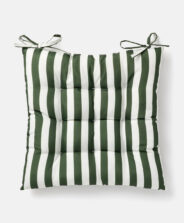 Prugasti vodootporni jastuk za stolicu pruža udobnost tokom boravka na otvorenom. Mekani materijal i vodootporna zaštita čine ga praktičnim i dugotrajnim. Ima vezice za pričvršćivanje. U ponudi su dostupna dva uzorka.