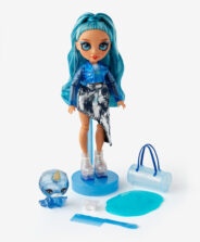 Rainbow High Skyler Bradshaw lutka oduševljava živopisnim bojama i elegantnim detaljima koji potiču maštovitu igru. Njena blistava haljina s asimetričnim uzorkom savršeno se uklapa s dugom tirkiznom kosom. Set sadrži torbicu, češalj, stalak i modne dodatke, koji djeci omogućavaju da razvijaju kreativnost i osmišljavaju različite modne priče.