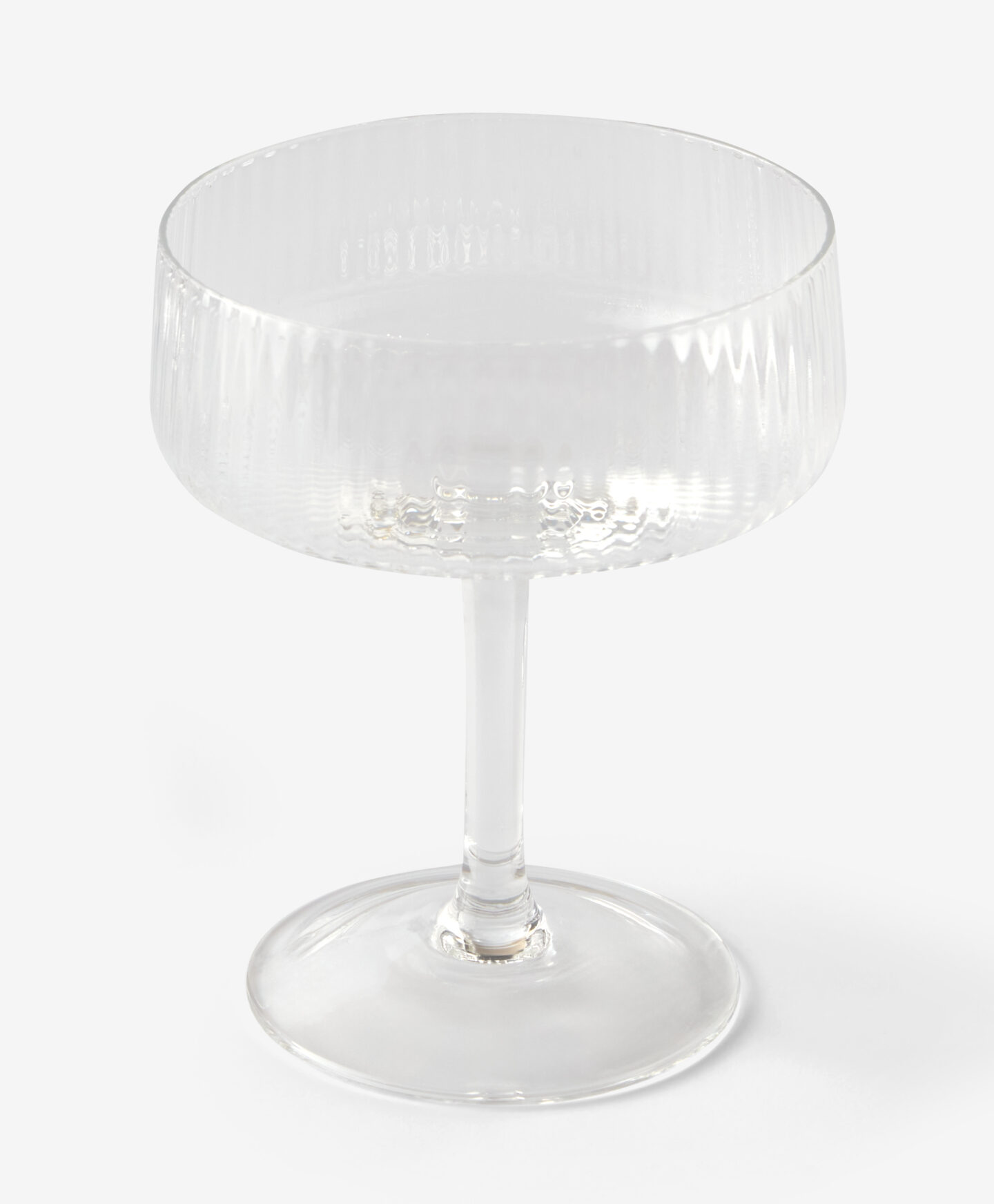 Rebraste coupe čaše, set od 4 komada, napravljene od stakla s rebrastom teksturom, elegantan su način da poslužite piće svojim gostima. Tanko stalko ugodno leži u ruci, a široka čaša izgleda prelijepo.