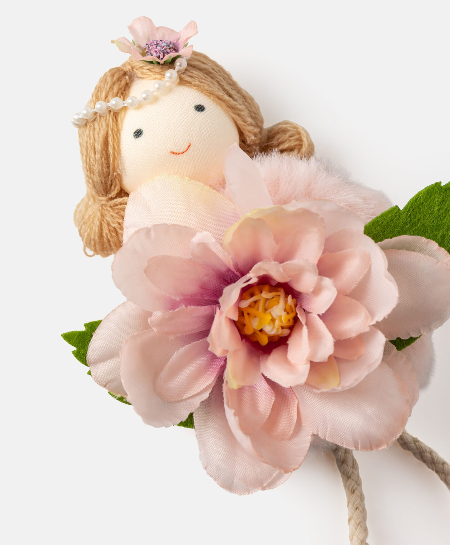 Tekstilni privjesak u obliku djevojčice s rozim cvijetom je šarmantan ukras napravljen od mekane tkanine koja unosi dašak proljetne lakoće u svaki interijer. Savršen je kao centralna dekoracija, ukras za dječiju sobu ili privjesak za torbu ili ruksak. Lagan je, mekan i jednostavan za održavanje. U ponudi su dostupni različiti dizajni.