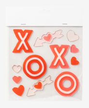 Set gel naljepnica, srca, savršen je ukras za Dan zaljubljenih. Napravljene su od mekanog gela i lako se lijepe na različite površine poput stakla, papira ili plastike. Idealne su za ukrašavanje ogledala, prozora ili vrata. U ponudi su dostupni različiti dizajni.
