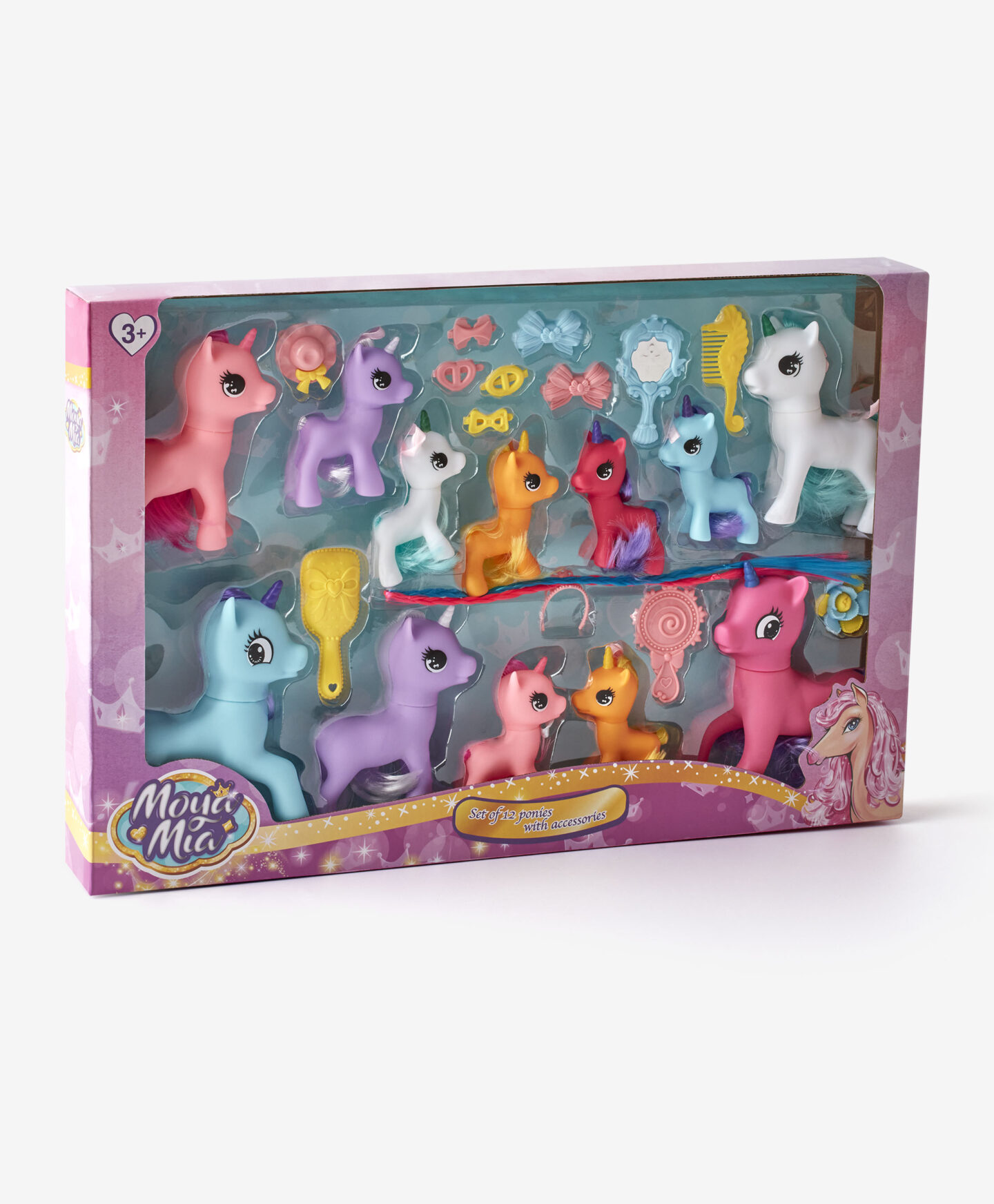 Set od 12 ponija s dodacima savršen je izbor za sve ljubitelje čarobnih bića. Svaki poni ima jedinstven izgled i boju, dok dodatni elementi omogućavaju raznoliku igru. Set je idealan i kao kolekcionarski komplet koji se može postepeno nadopunjavati.
