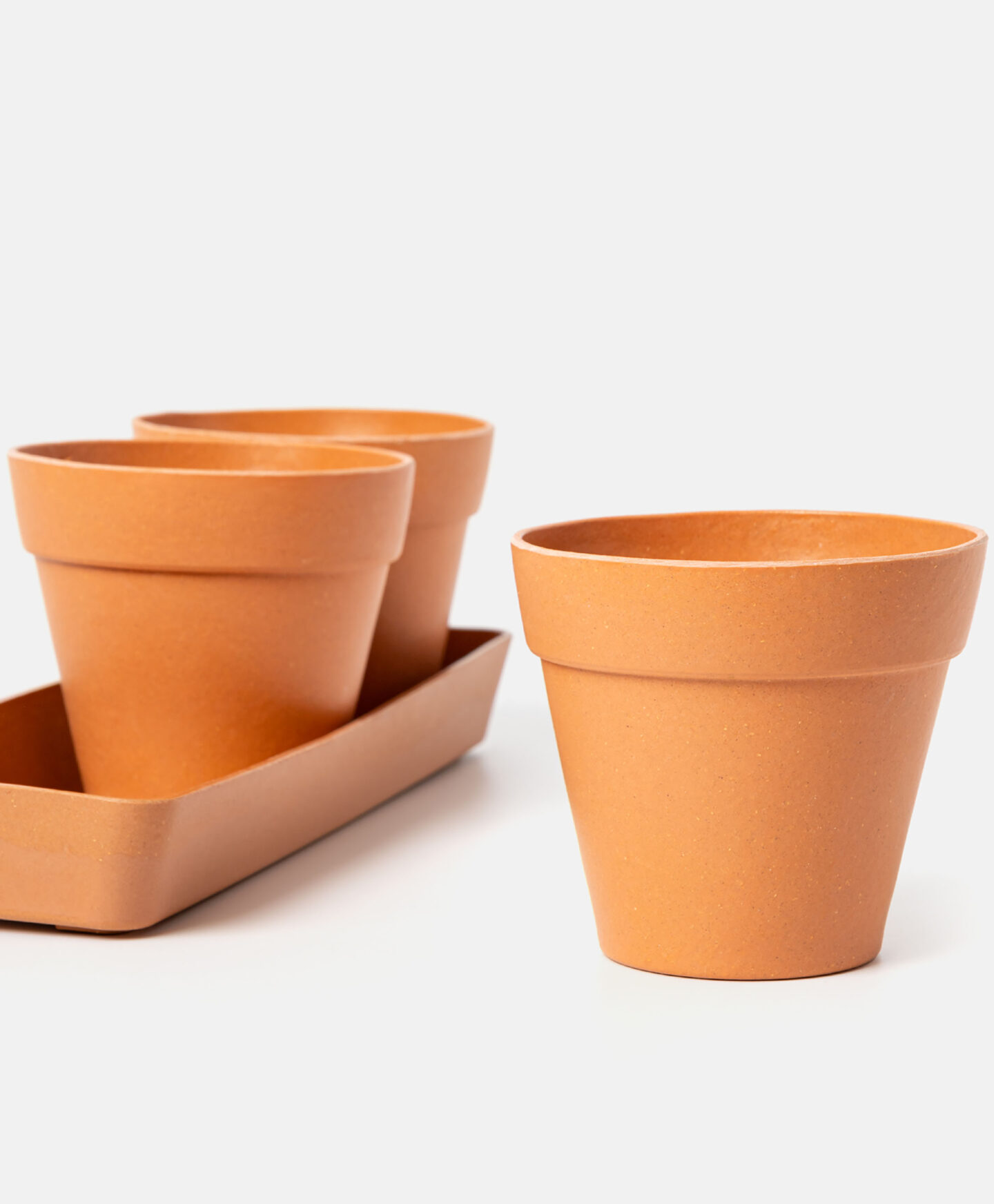 Set od 3 saksije za začinsko bilje s podmetačem omogućava uzgoj svježeg bilja kod kuće ili na balkonu. Set je izdržljiv, lagan i jednostavan za održavanje. Zajednički podmetač stabilizuje saksije, štiti površinu od vlage i stvara urednu i kompaktnu cjelinu. Saksije imaju drenažne otvore na dnu koji omogućavaju otjecanje vode i štite korijenje od prekomjerne vlage. Idealan su izbor za kuhinjski prozor, stol ili policu.