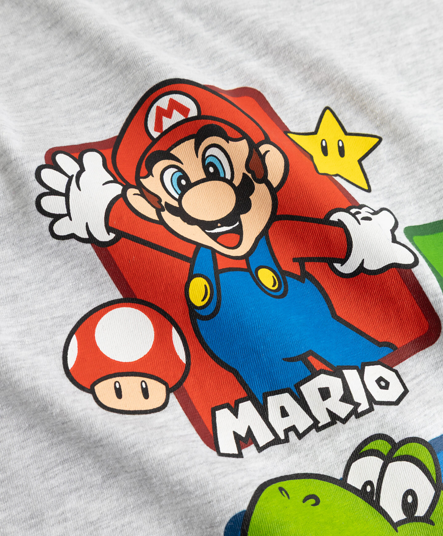 Siva Super Mario majica za dječake savršen je izbor za mlade fanove kultne Nintendo igrice! Veliki print na prednjoj strani privlači pažnju, a klasični kroj omogućava slobodu kretanja. Majica se odlično slaže s jeansom, trenerkama ili šorcevima. Univerzalan je izbor za svaki dan.