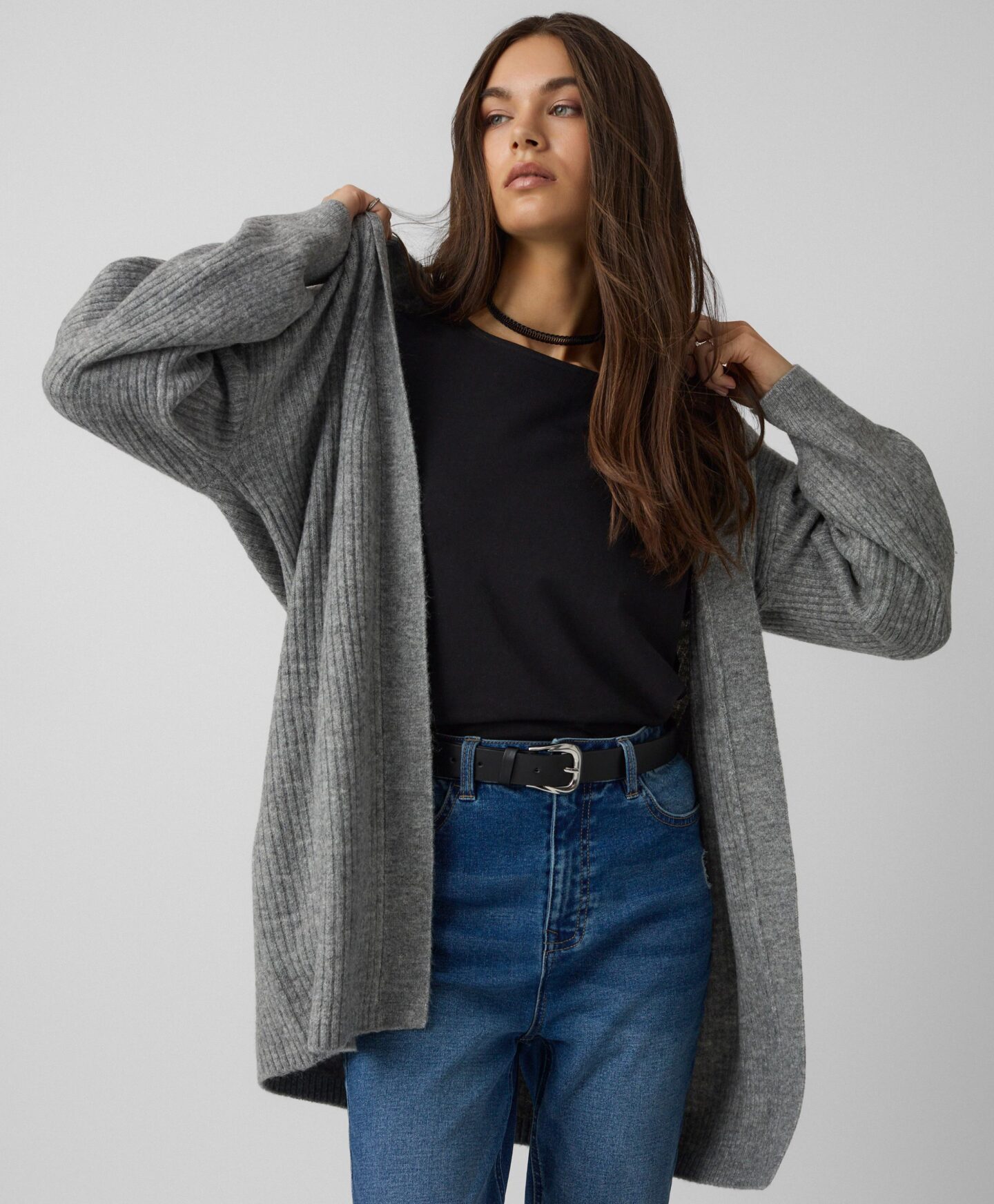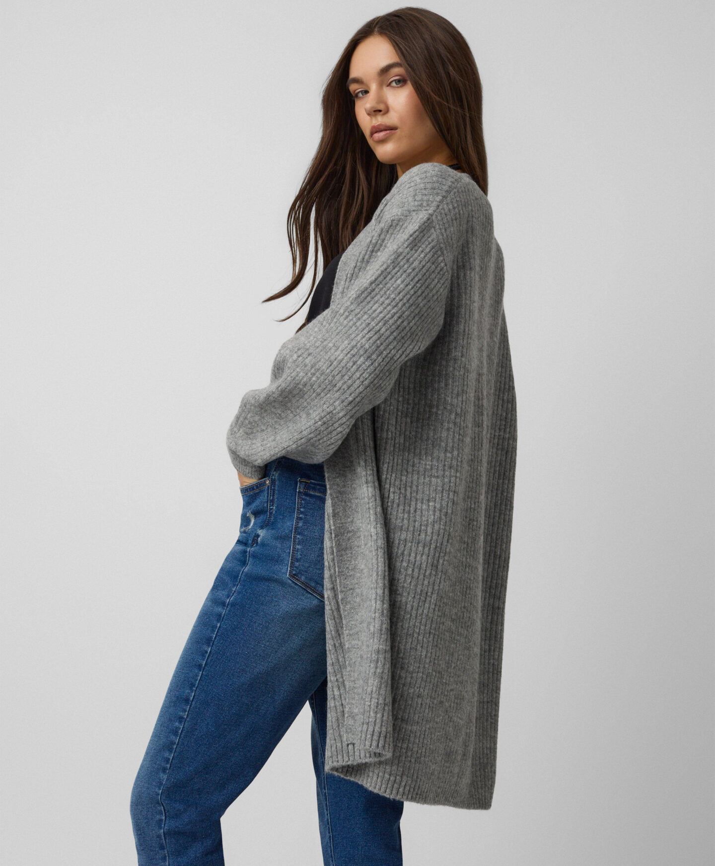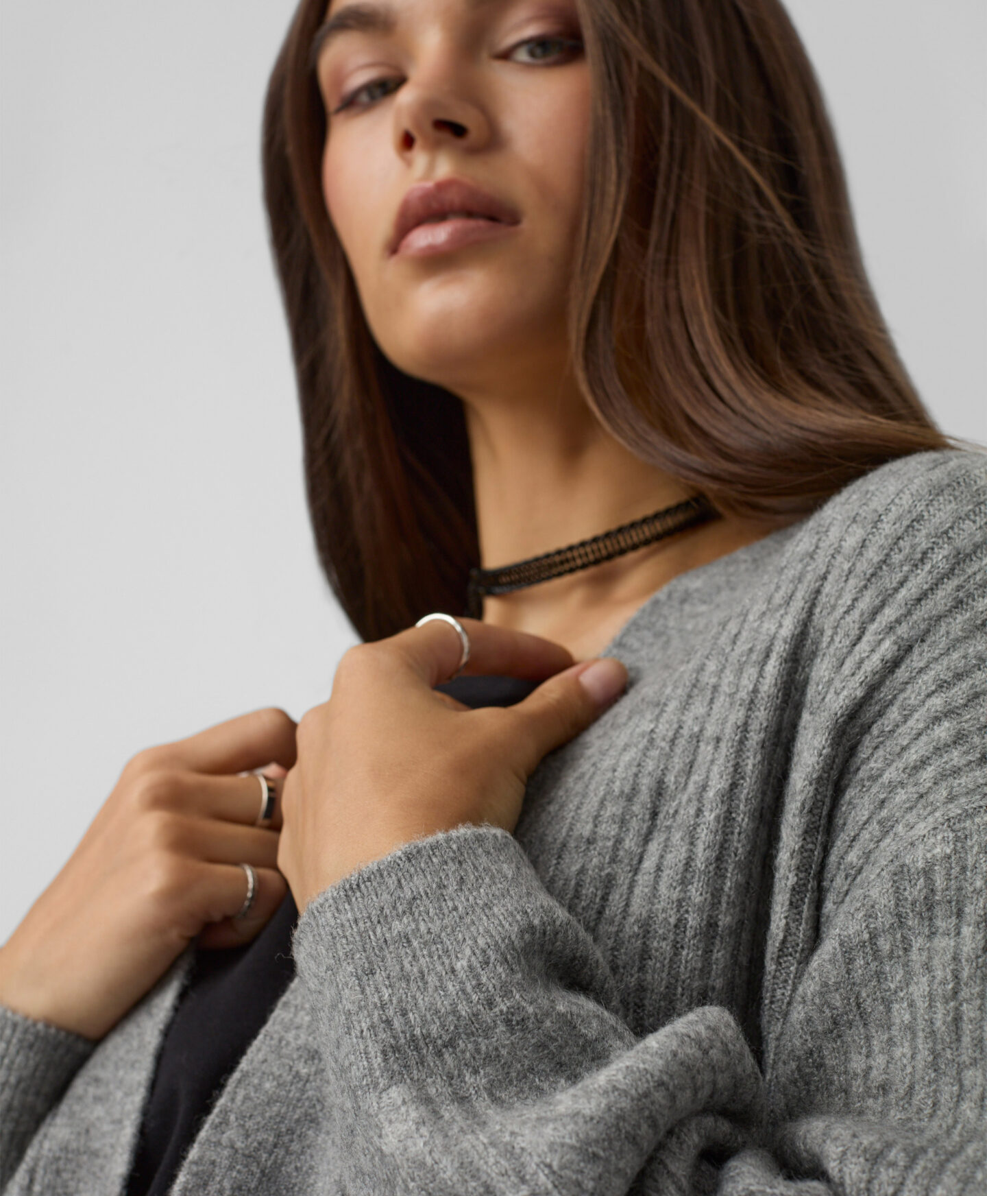 Sivi dugi kardigan za žene savršen je za svaku priliku. Pruža toplinu i elegantan izgled u hladnijim danima, a odlično se kombinuje s različitim odjevnim komadima, od haljina do hlača. Širi kroj kardigana pristaje svakoj figuri, osiguravajući udobnost i slobodu kretanja.