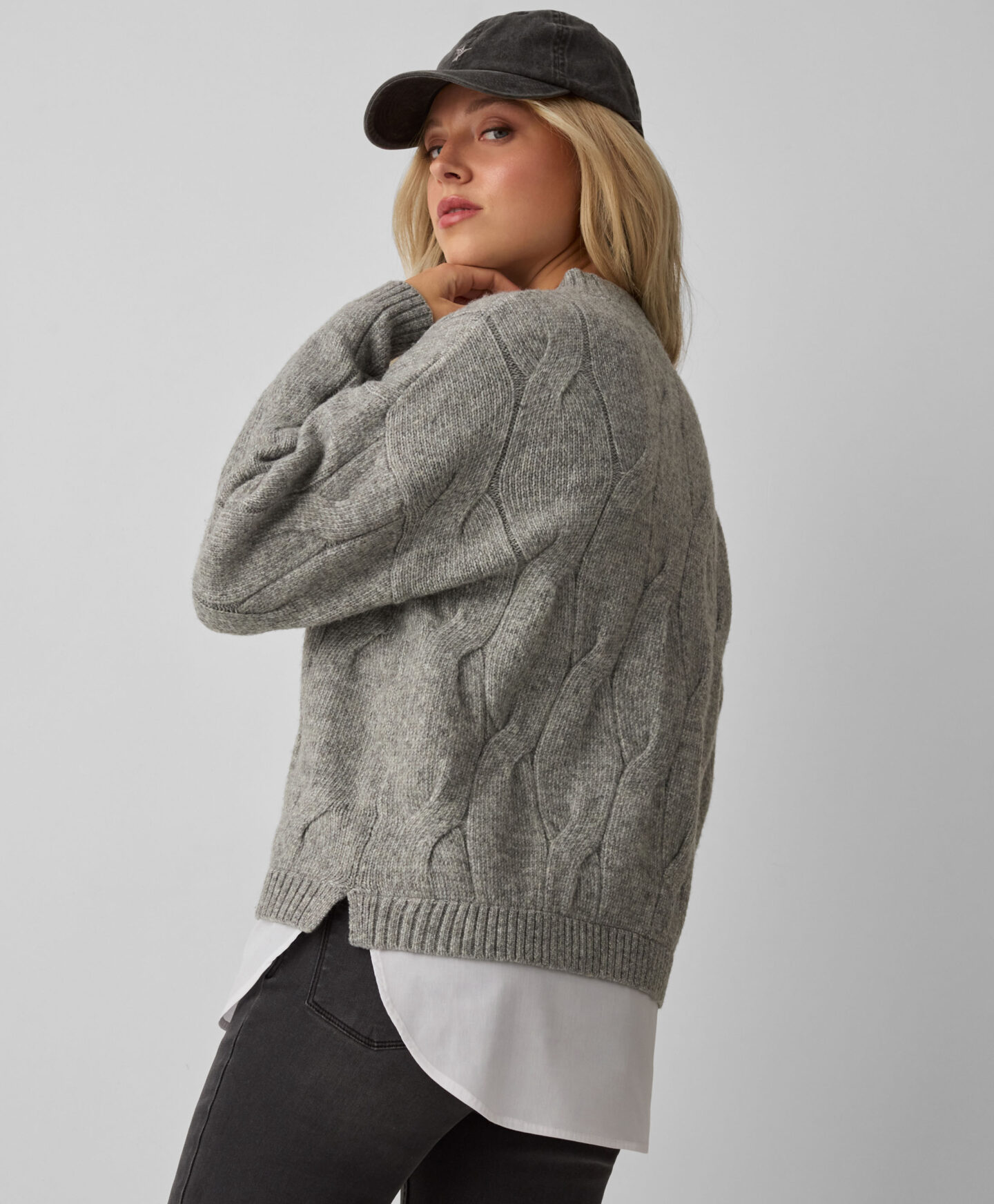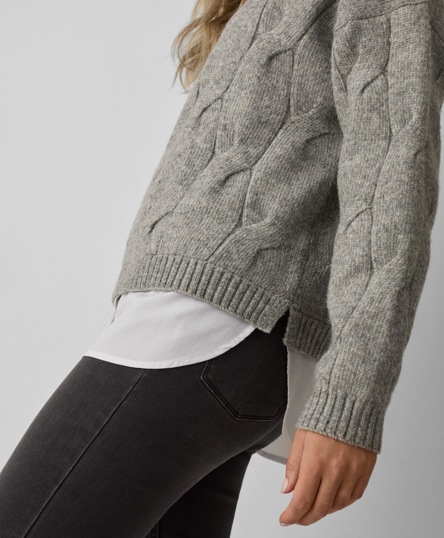 Sivi džemper s košuljom za žene namijenjen je damama koje prate modne trendove. Pleteni uzorak savršeno odražava jesenji duh, dok kombinacija s bijelom košuljom čini ovaj komad idealnim za brojne prilike, od posla, preko druženja, do večernjih izlazaka. U ponudi su dostupne dvije boje.