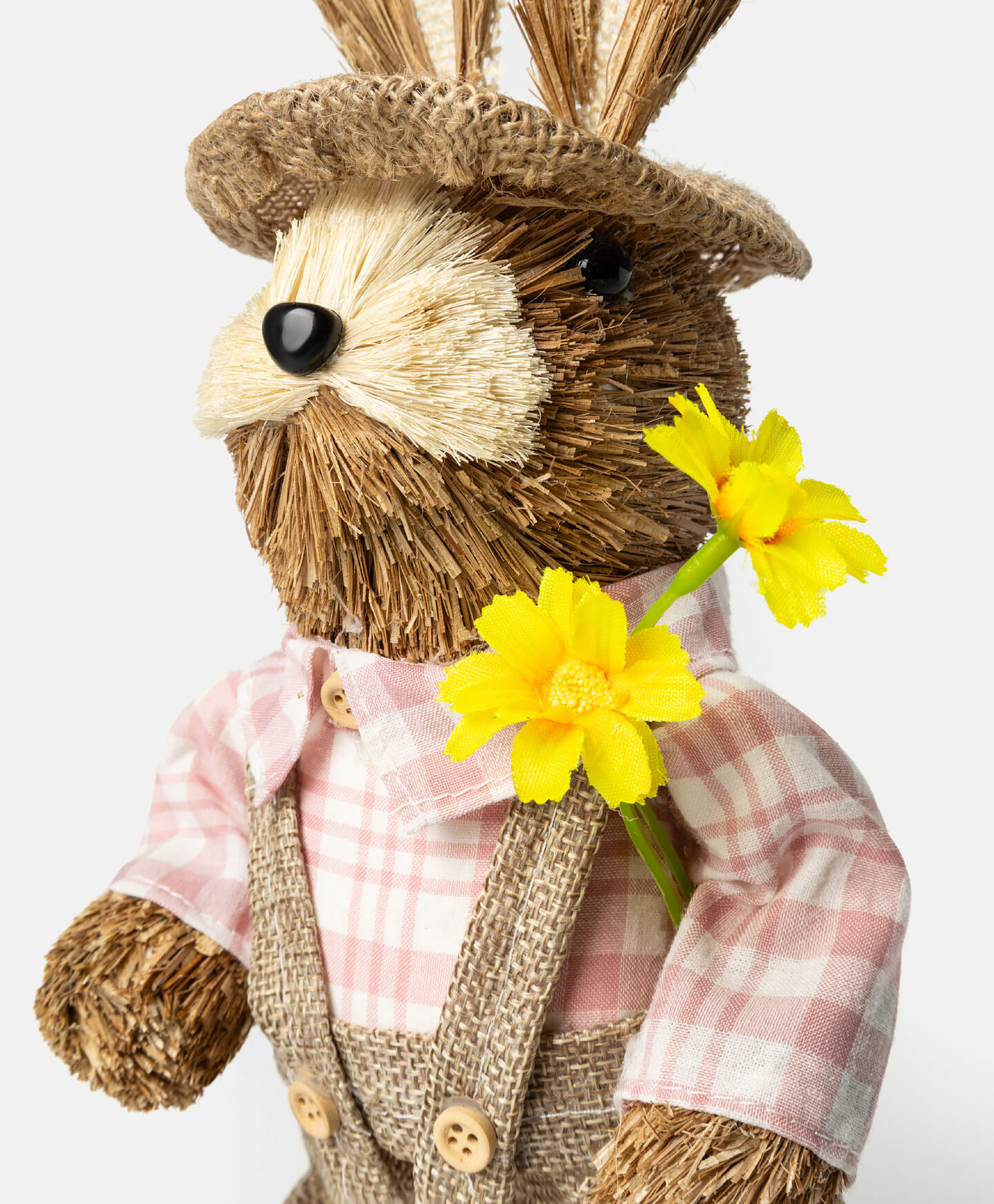 Slamnati zec je šarmantan ukras djelimično napravljen od prirodnih materijala, koja se savršeno uklapa u rustikalne i moderne interijere. Zec je lagan, izdržljiv i potpuno siguran za djecu i kućne ljubimce. Također je odličan poklon za ljubitelje uskrsnih ukrasa.