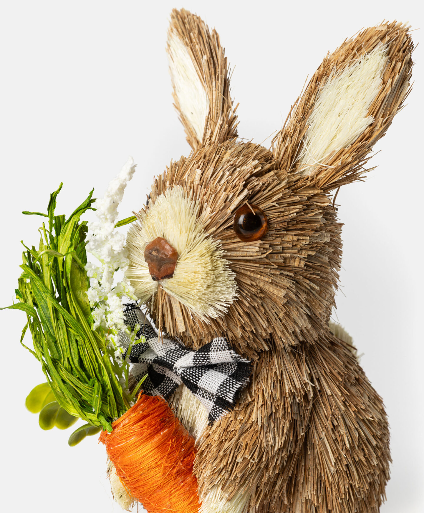 Slamnati zec s mrkvom je šarmantan ukras, djelimično napravljen od prirodnih materijala, koji se savršeno uklapa u rustikalne, ali i moderne interijere. Zec je lagan, izdržljiv i potpuno siguran za djecu i kućne ljubimce. Također je divan poklon za sve koji vole uskrsne ukrasne detalje.