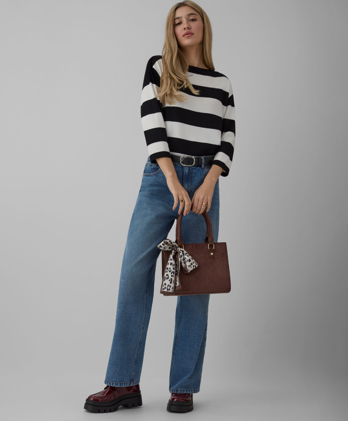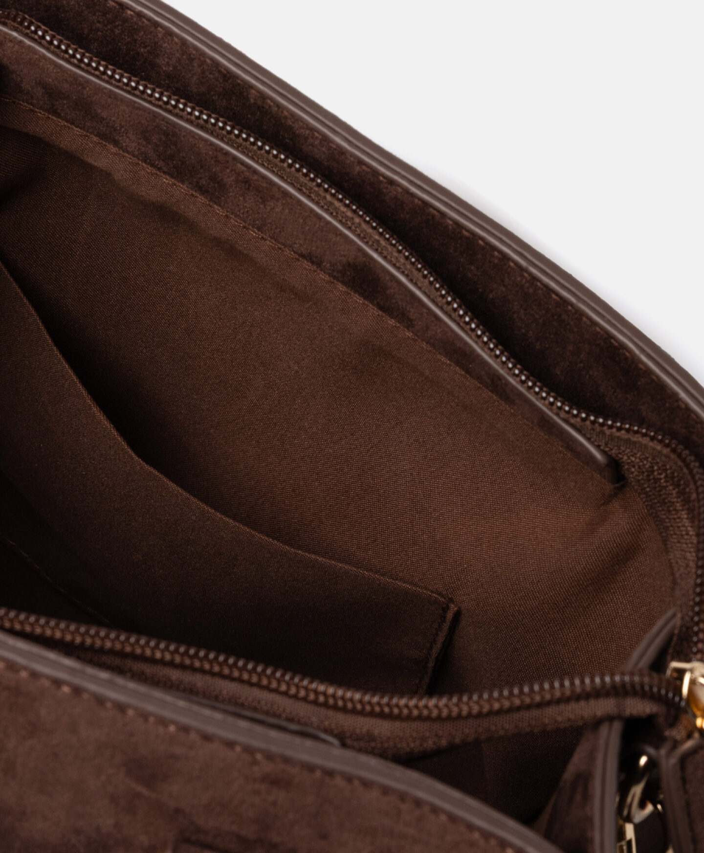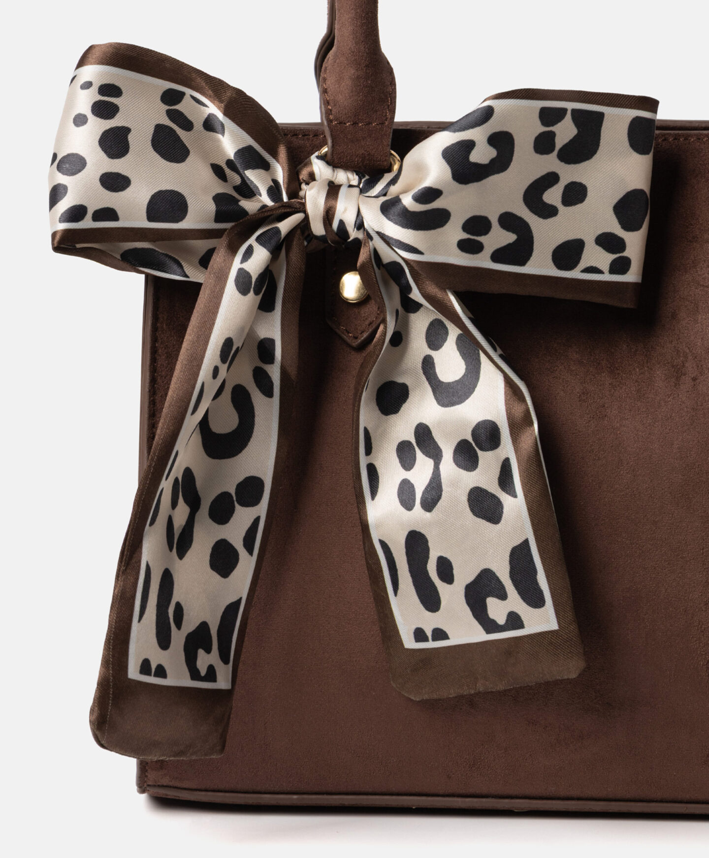 Smeđa torbica za žene, s ukrasnim šalom, elegantan je dodatak koji spaja klasičan stil s modernim detaljem. Napravljena je od izdržljivih materijala i upotpunjuje svaku kombinaciju. Ukrasni šal daje joj jedinstven karakter.