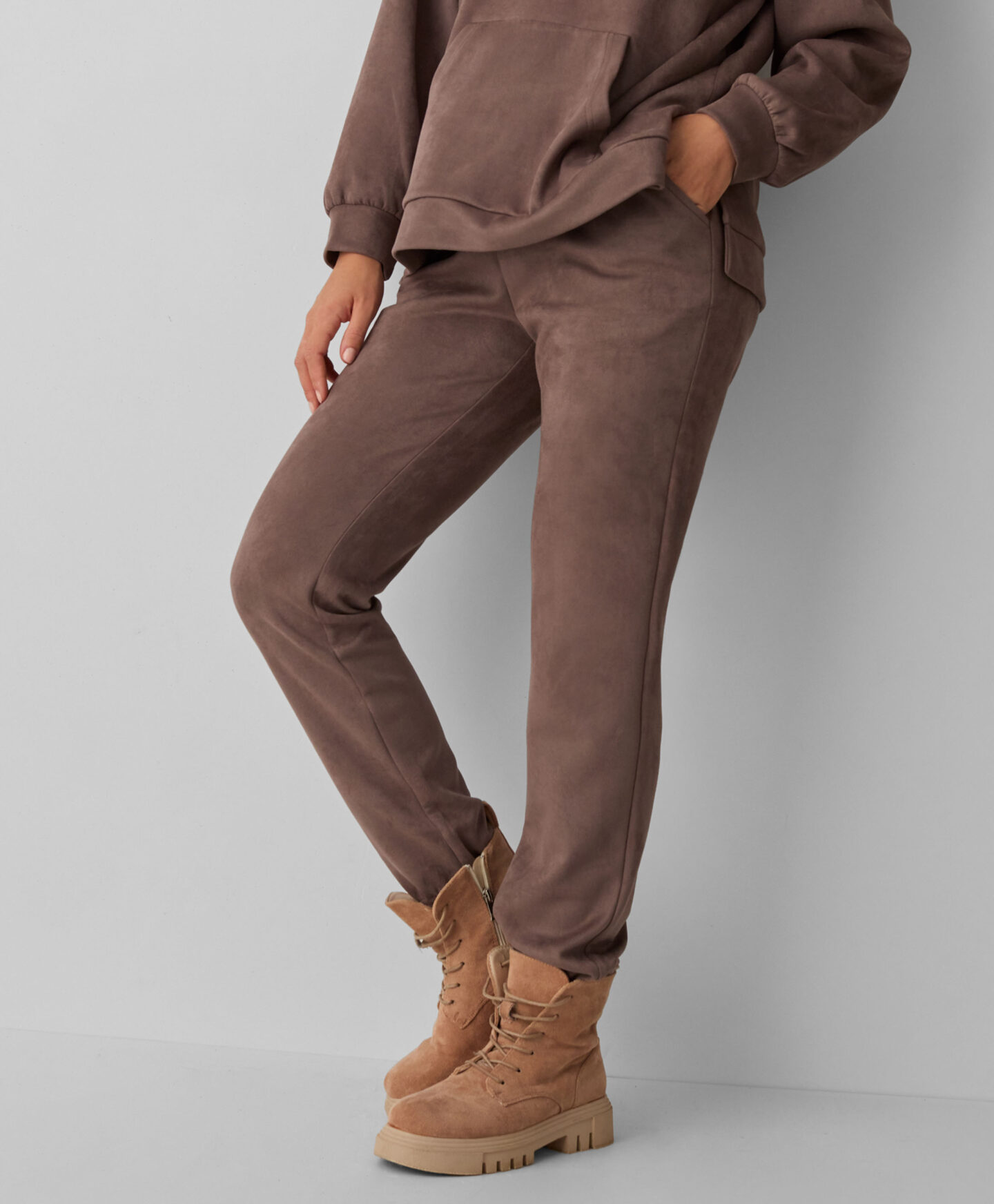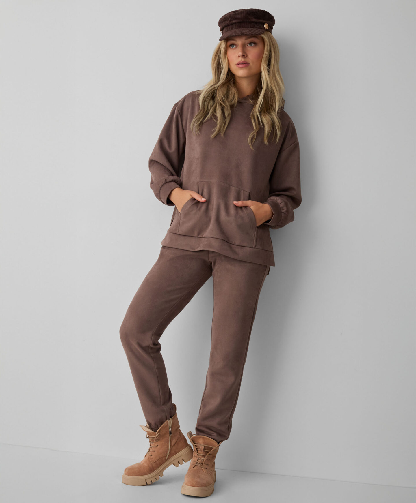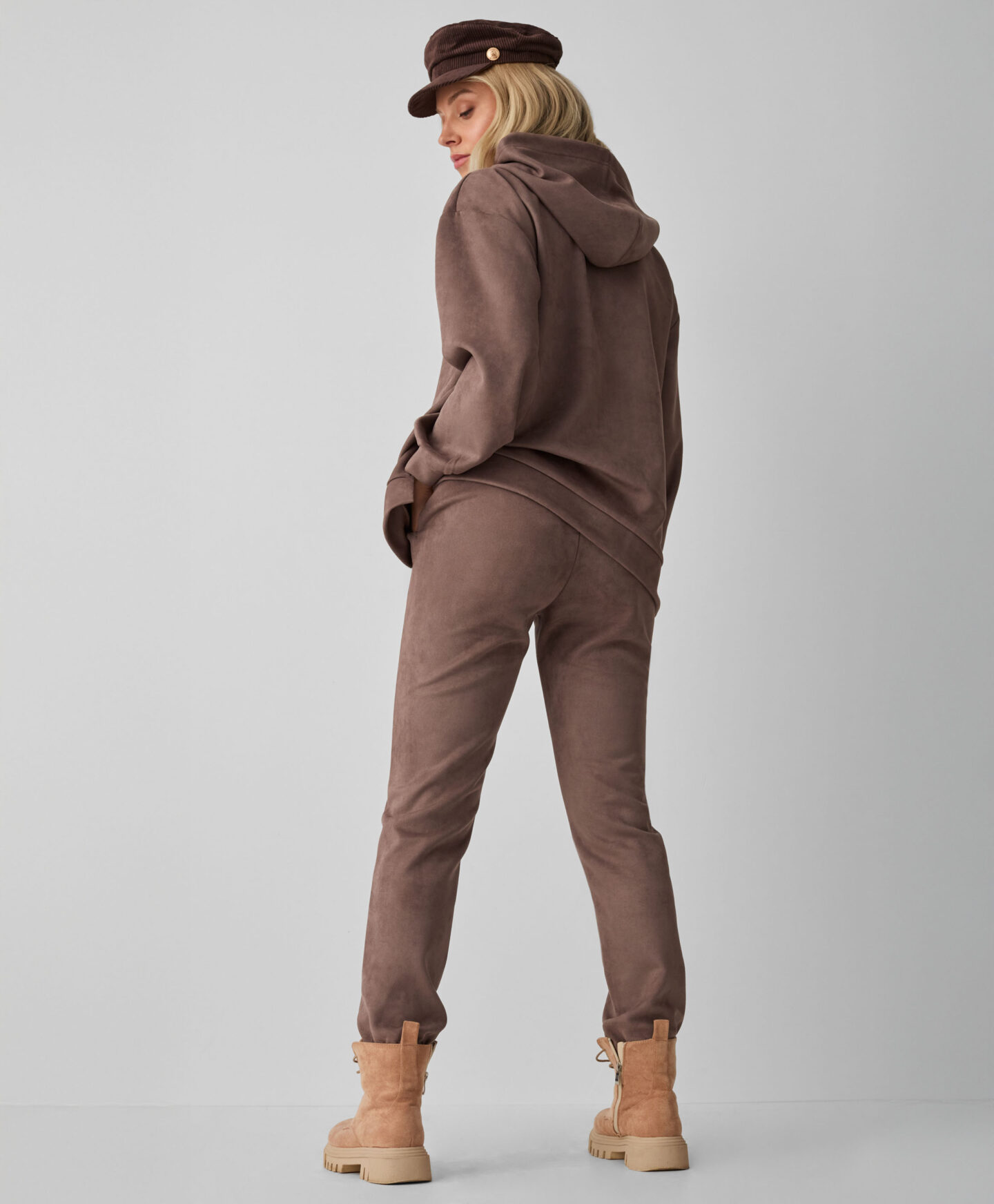 Smeđe antilop hlače s džepovima za žene predstavljaju moderan i udoban izbor za svaki dan. Mekane su, prijatne na dodir i idealne za jesenje šetnje. Prigušena nijansa smeđe savršeno se slaže s duksericom s kapuljačom iz iste kolekcije. U ponudi su dostupni različiti dezeni.