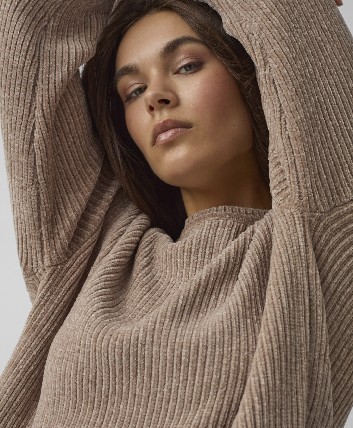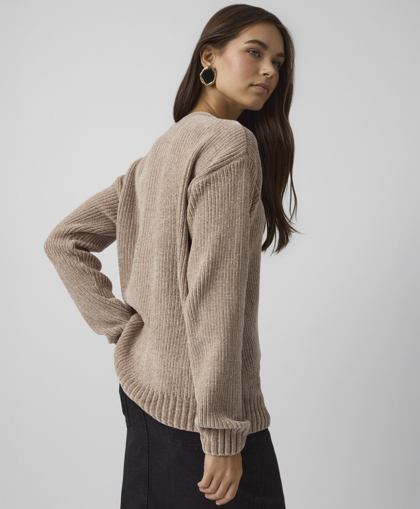 Smeđi džemper za žene, napravljen od mekanog chenille materijala, odlično se kombinuje i s ležernim i s elegantnijim kombinacijama. Mekan je na dodir i pruža maksimalnu udobnost. U ponudi su dostupne dvije boje.
