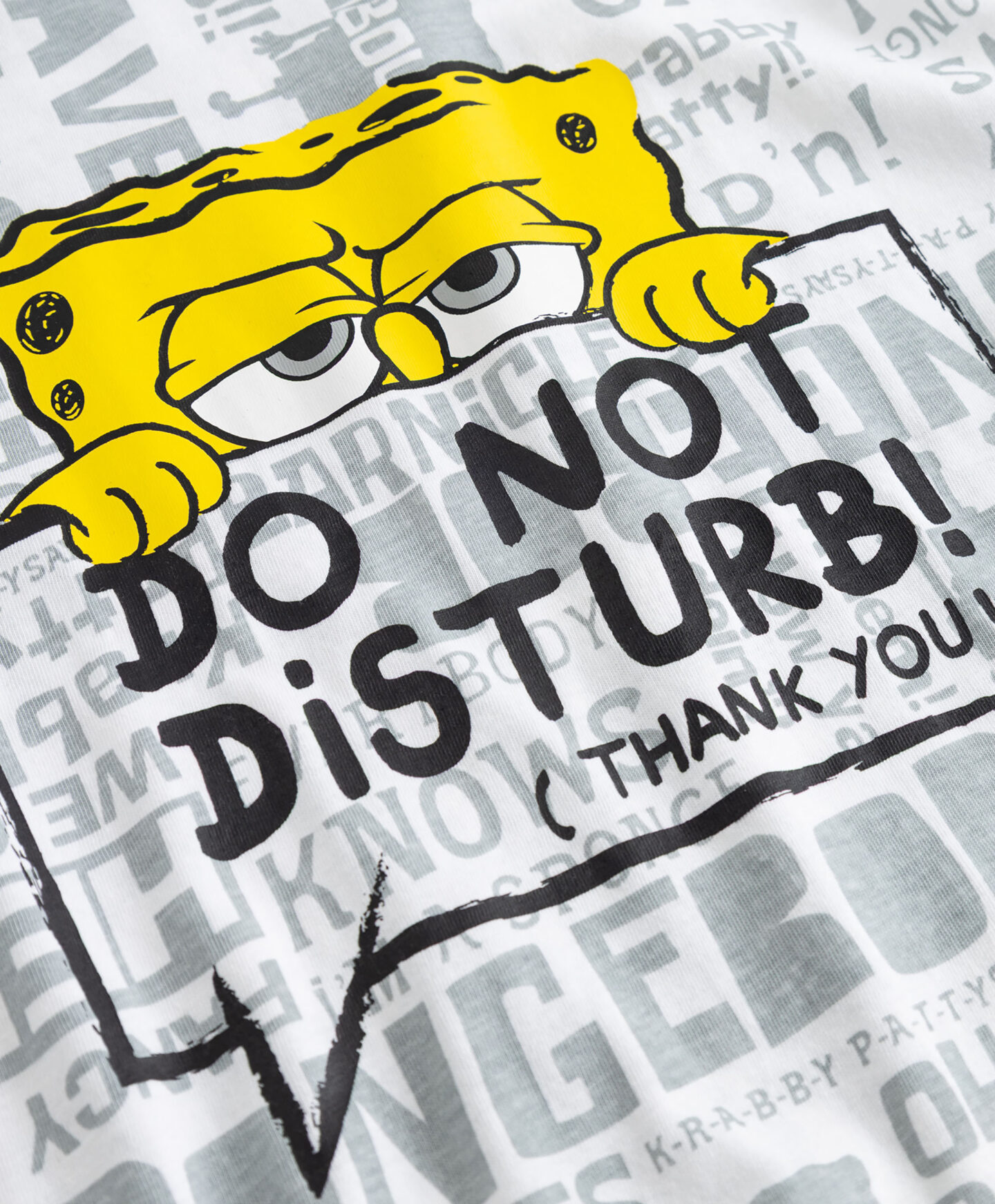 SpongeBob majica kratkih rukava za dječake, napravljena od 100% pamuka, s motivom glavnog lika iz popularnog crtanog filma odličan je izbor za svakog fana serije. Kombinuje omiljeni dizajn s maksimalnom udobnošću. Napravljena od pamuka, majica je mekana, prozračna i ugodna za kožu. U ponudi su dostupni različiti uzorci.