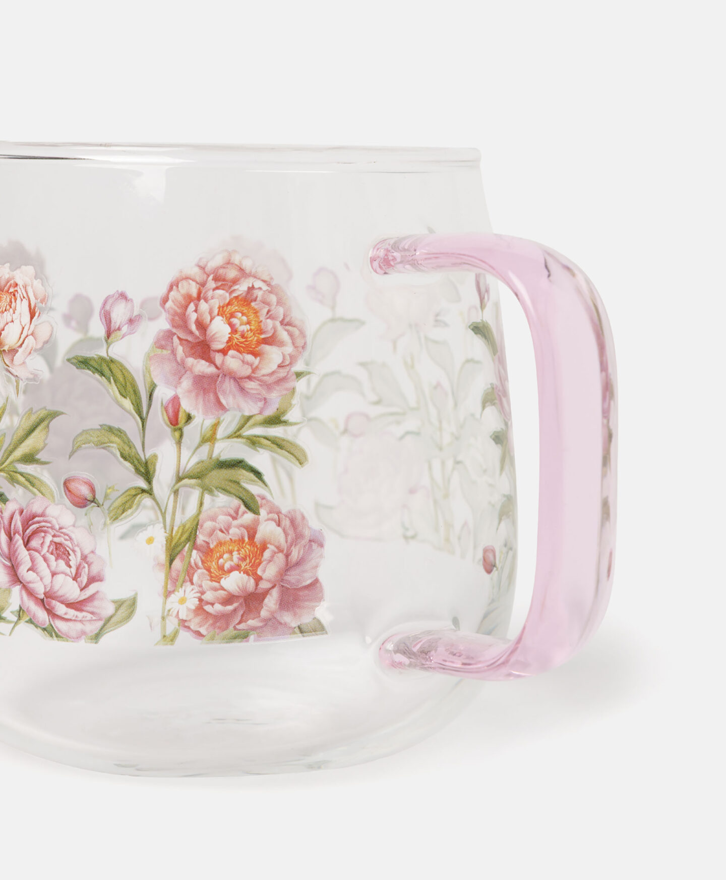 Staklena šolja s cvjetnim uzorkom savršena je za ljubitelje kafe i čaja. Šarmantan dizajn uljepšava svaki trenutak s omiljenim napitkom. Napravljena je od borosilikatnog stakla otpornog na ogrebotine i pukotine i ne upija mirise. U ponudi je dostupan i odgovarajući bokal.