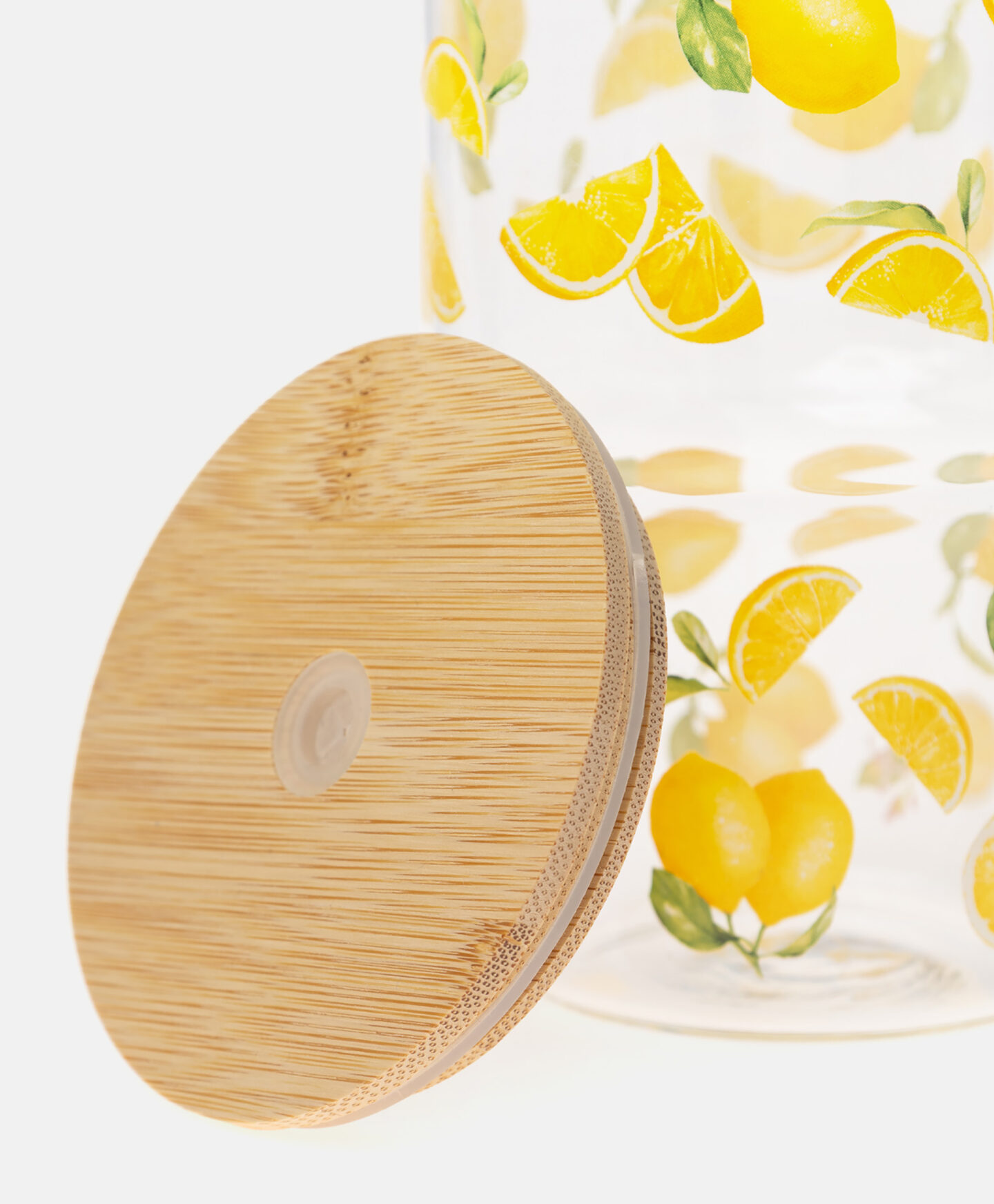 Staklena šolja s uzorkom limuna, slamkom i poklopcem savršena je za sve koji vole imati omiljeno piće uvijek pri ruci. Zapremina od 800 ml idealna je za veće količine napitaka bez potrebe za čestim dolijevanjem. Staklo ne upija mirise niti mijenja okus pića, a šolja je jednostavna za održavanje.