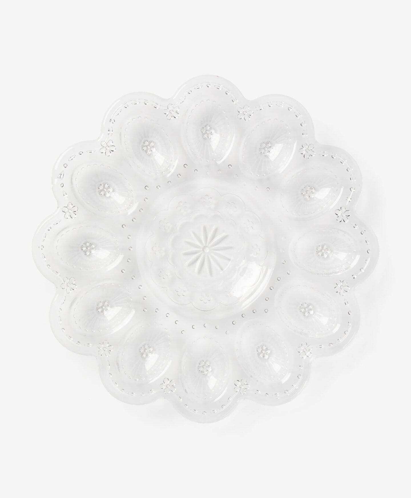 Staklena tacna za jaja savršena je za praznični doručak. Predstavlja elegantan način za serviranje punjenih, tvrdo kuhanih ili meko kuhanih jaja. Također može poslužiti kao ukras za sto ili izložbeni element za ručno ukrašena uskrsna jaja.