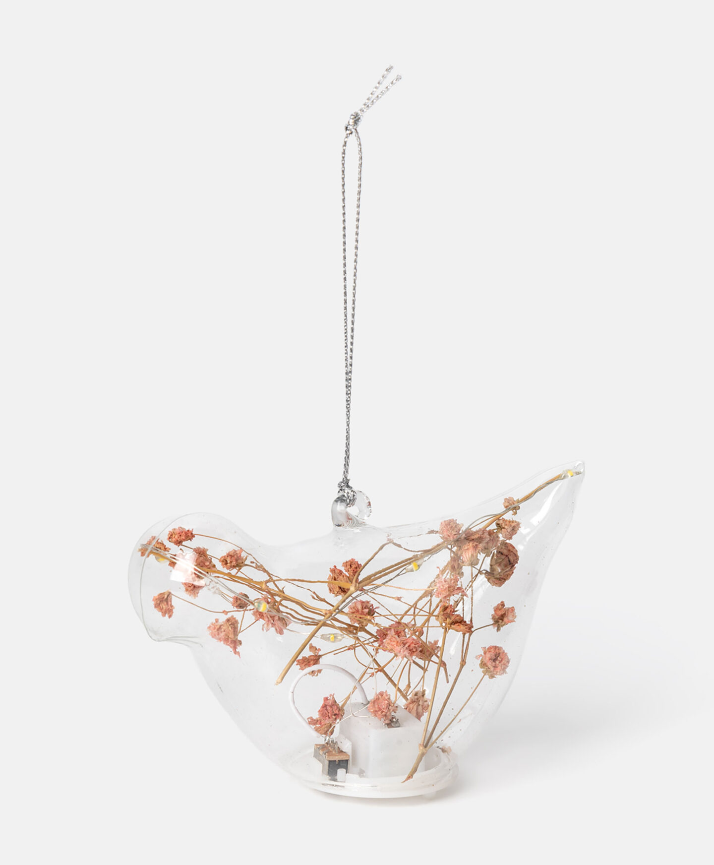 Stakleni LED privjesak u obliku ptice sa sadarkom