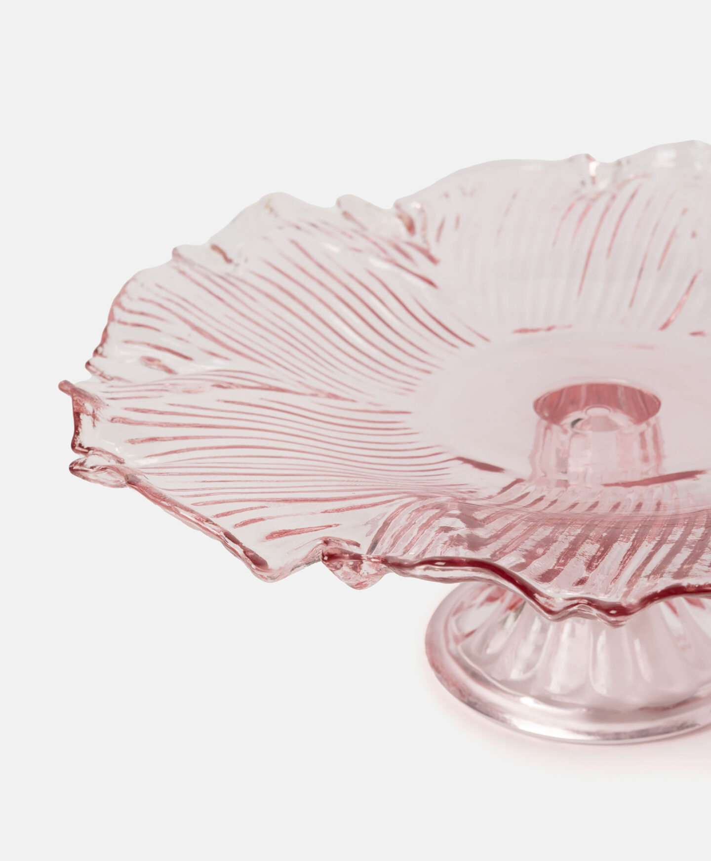 Stakleni stalak za kolače u obliku cvijeta istaknut će se u vašoj kuhinji. Vitko postolje i tacna koja podsjeća na rascvjetani cvijet bit će ukras svake trpeze i savršeno će dopuniti vaše posuđe. Stalak je odličan za serviranje kolača i peciva, ali i za odlaganje voća na kuhinjskom pultu. Otporan je na svakodnevnu upotrebu i lako se čisti.