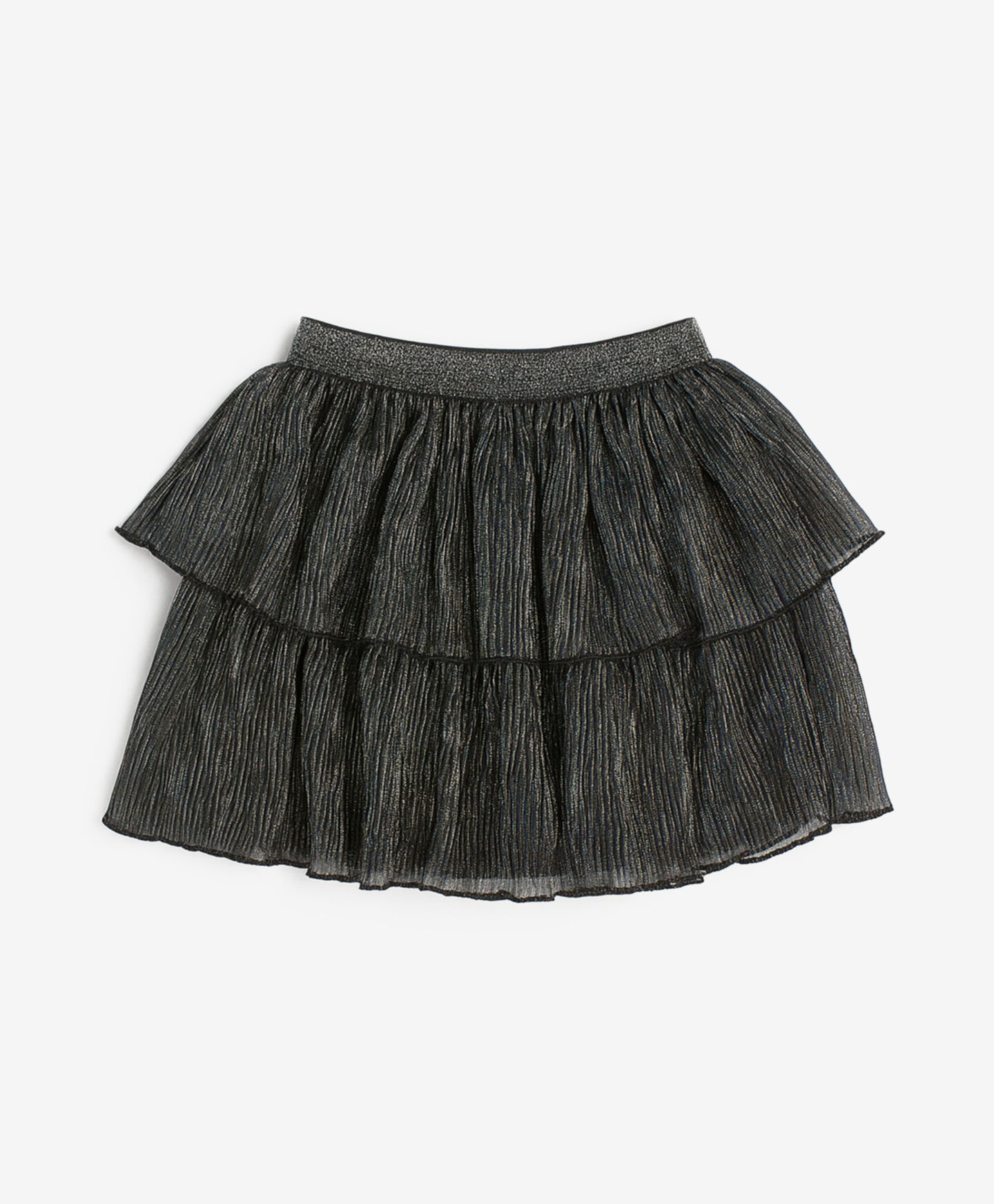 Suknja s metalik koncem za djevojčice je lagana, prozračna i moderna. Savršena za porodična okupljanja ili školske zabave. Elastični pojas osigurava savršeno pristajanje i udobnost tokom nošenja.