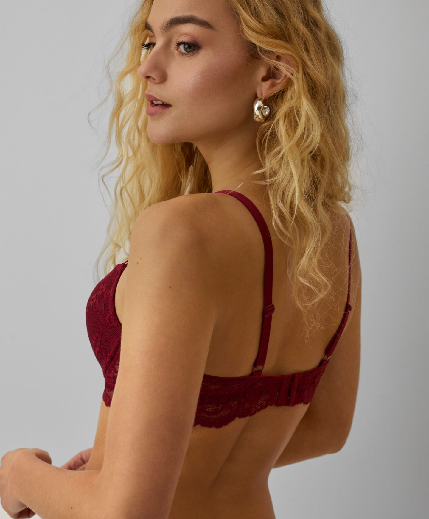 Super push-up grudnjak za žene pruža izvanredan efekat povećanja grudi, čineći svaki stajling atraktivnijim. Uzorak bordo ruža daje mu romantičan izgled, što ga čini savršenim poklonom za senzualne prilike. Napravljen od mekanih, ugodnih materijala, pruža udobnost tokom cijelog dana. U ponudi su dostupne i odgovarajuće gaćice.