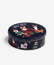 Tamno plava okrugla limena kutija s veselim prazničnim uzorkom privlači pažnju toplinom i šarmom. Idealna je za čuvanje slatkiša, sitnih poklona ili kao originalno pakovanje za poklon. I najmanji znak pažnje uz nju dobija čaroban karakter.