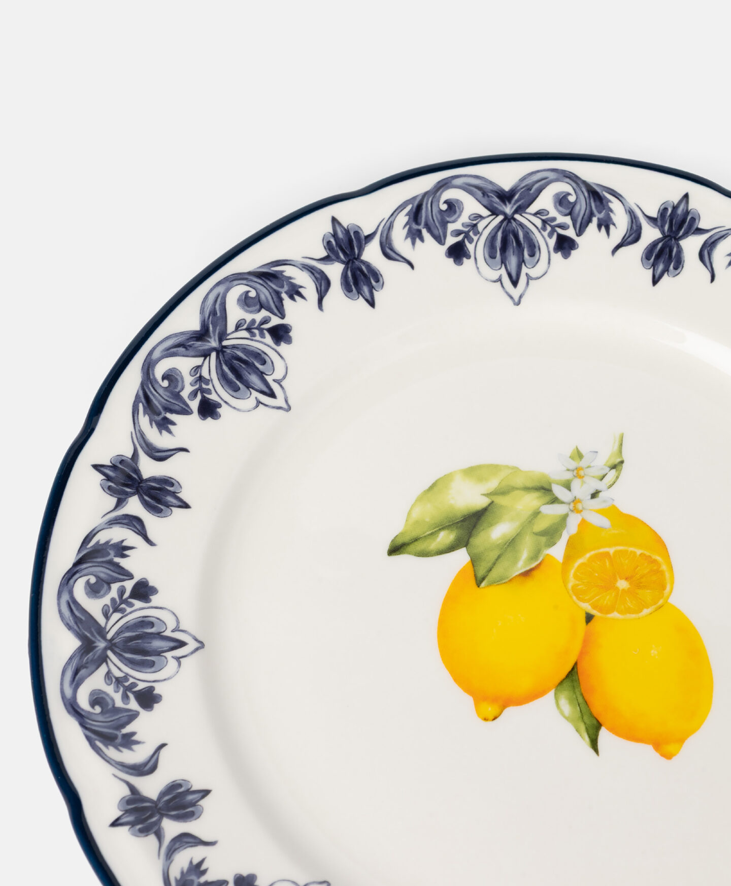 Tanjir za desert od kamenine s uzorkom limuna elegantan je dodatak vašem posuđu. Uzorak inspirisan mediteranskim pejzažem daje mu jedinstven izgled. Kamenina je izdržljiva, otporna na oštećenja i jednostavna za održavanje. Savršen je za serviranje kolača, voća i drugih slastica.