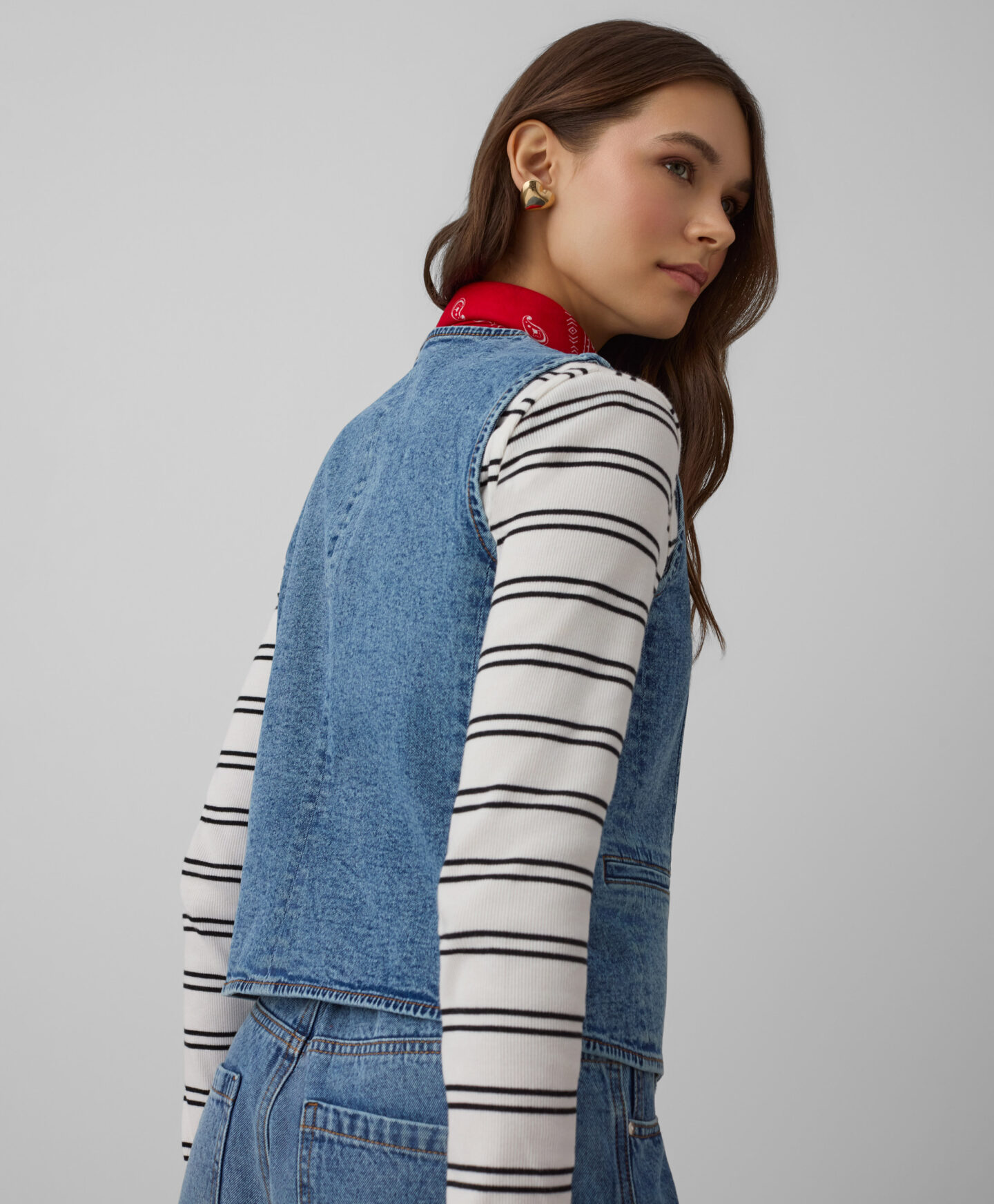 Teksas prsluk za žene, s visokim udjelom pamuka, odlično se slaže s mnogim outfitima. Savršen je dodatak koji nadopunjuje i elegantnu košulju i ležernu majicu. Dodatak elastina osigurava idealno pristajanje uz tijelo.