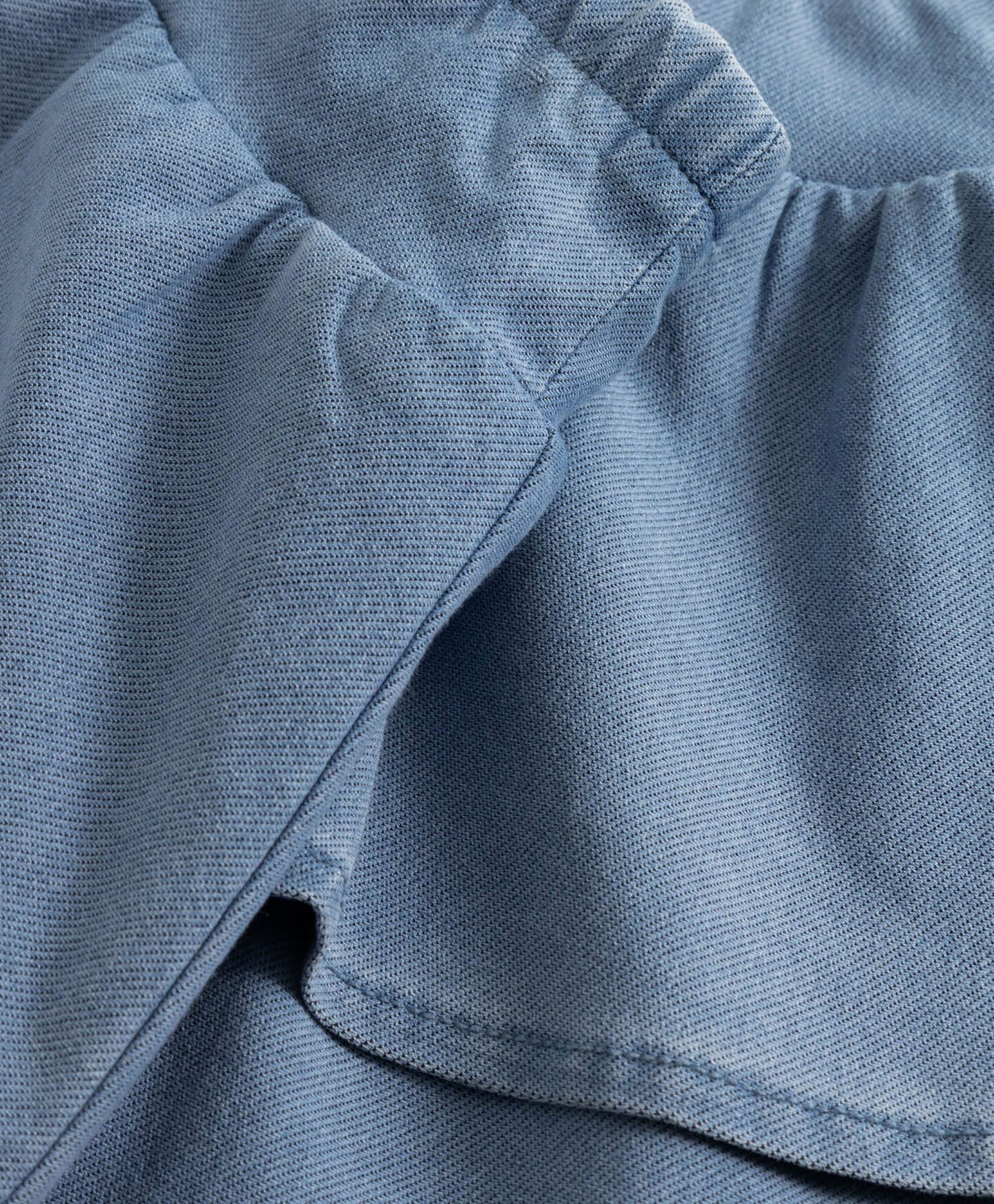 Teksas suknja s volanima za djevojčice ističe se zanimljivim dizajnom. Volani dodaju volumen i daju outfitu lagan, djevojački izgled. Klasični teksas savršeno se kombinuje s majicama, košuljama i duksericama, nudeći brojne mogućnosti stiliziranja. Idealna je za prve tople proljetne dane.