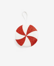 Ukras u obliku prazničnog lizala izgleda kao pravo slatko umjetničko djelo. Spiralni crveno-bijeli uzorak unosi vedrinu i lakoću, savršeno balansirajući klasične kugle. Zahvaljujući mekanoj strukturi, ukras je i atraktivan i praktičan. Sigurno čak i ako mu pristupe djeca ili kućni ljubimci.