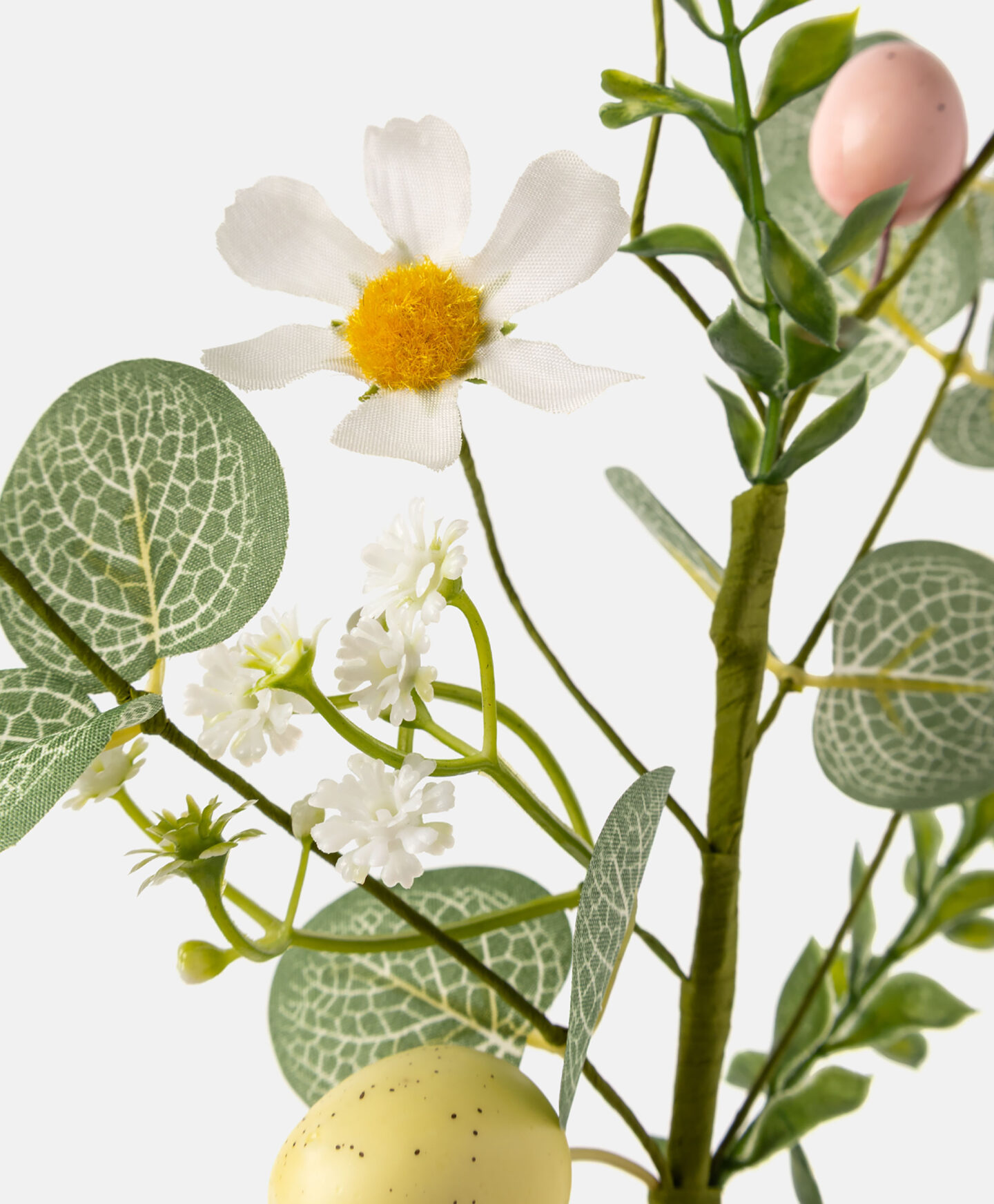 Ukrasna grana sa šarenim uskršnjim jajima i cvijećem savršeno je rješenje za sve koji traže gotov i upečatljiv ukras. Možete je koristiti za izradu veće dekoracije stola ili je zasaditi u saksiju kako biste svom cvijeću dali uskrsni karakter. Također se odlično uklapa kao dio buketa ili samostalno postavljena u vazu. Unijet će proljeće u vaš dnevni boravak!