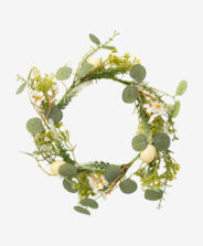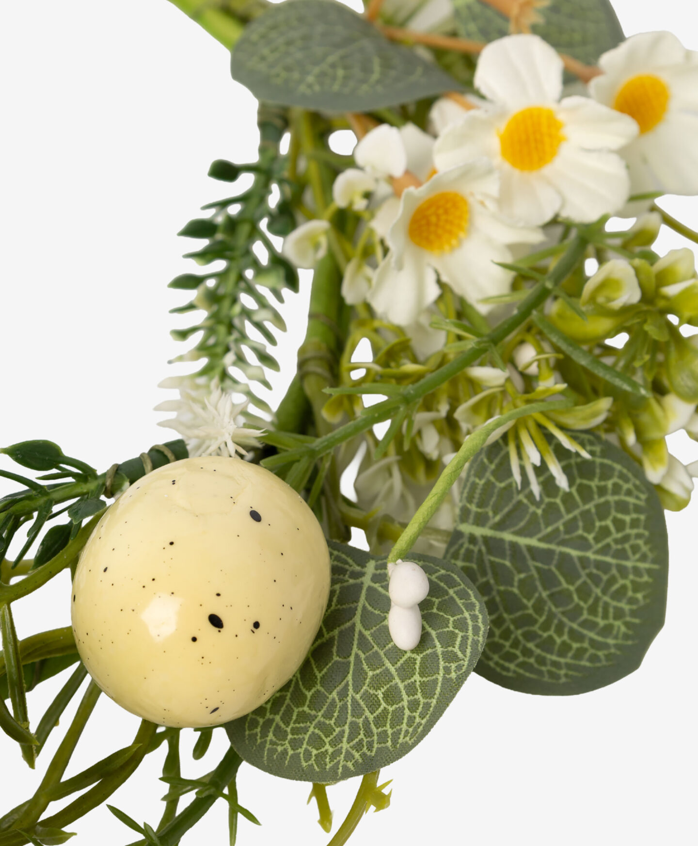 Uskrsni vijenac s bijelim cvjetovima savršen je kao ukras za vrata, lijep dodatak dnevnom boravku ili kancelariji, ili kao ukrasni element za uskrsne proslave i okupljanja. Možete ga koristiti i za izradu proljetnog aranžmana uz mirisne svijeće i dizajnersku vazu. U ponudi je dostupno više različitih dizajna.
