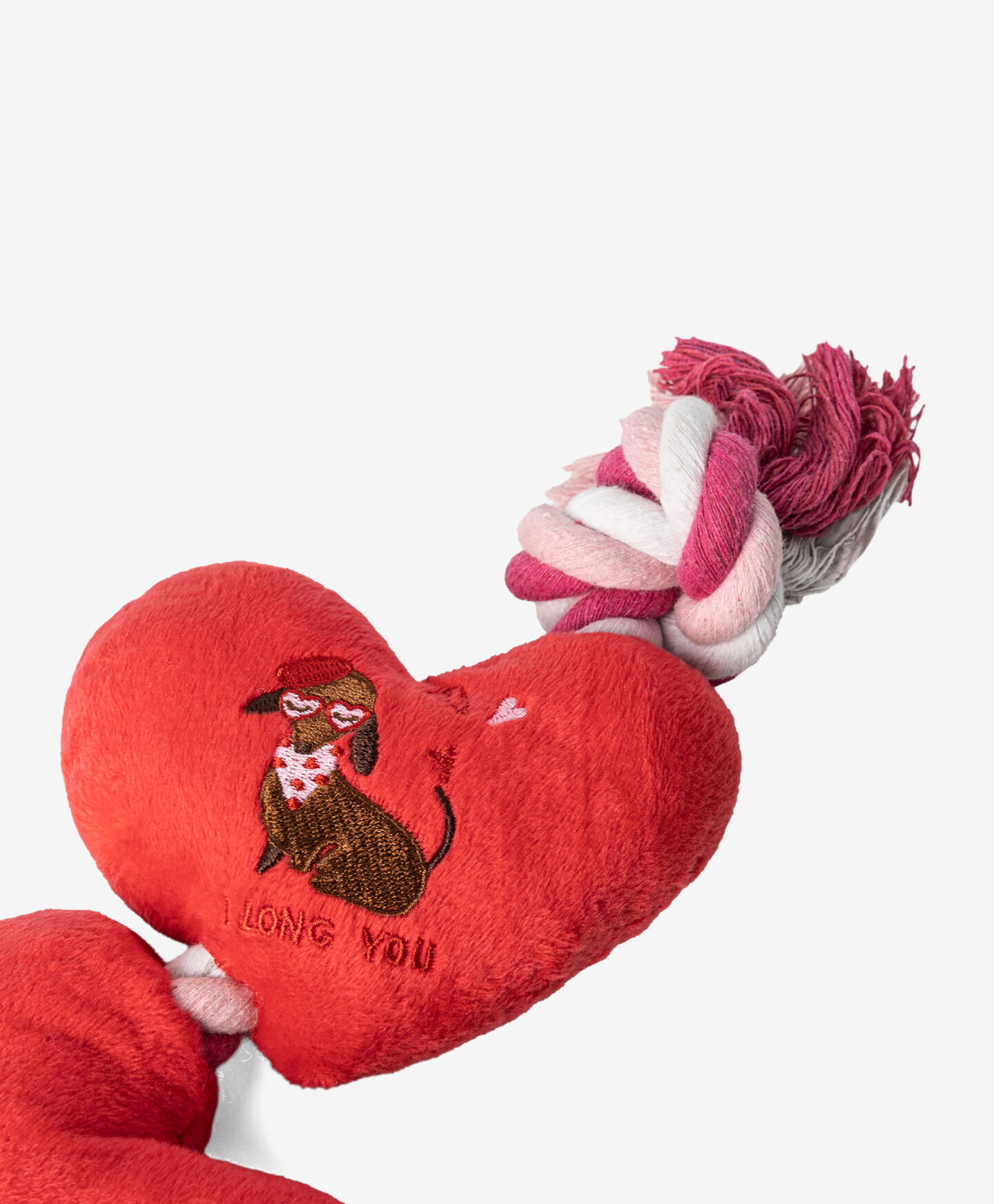 Uže-igračka s 2 srca za pse odličan je izbor za pse koji vole aktivnu igru. Jedno srce proizvodi zvuk, što dodatno podstiče interes i interakciju. Izdržljivo uže idealno je za potezanje, dok mekana srca pružaju udobnost tokom žvakanja.