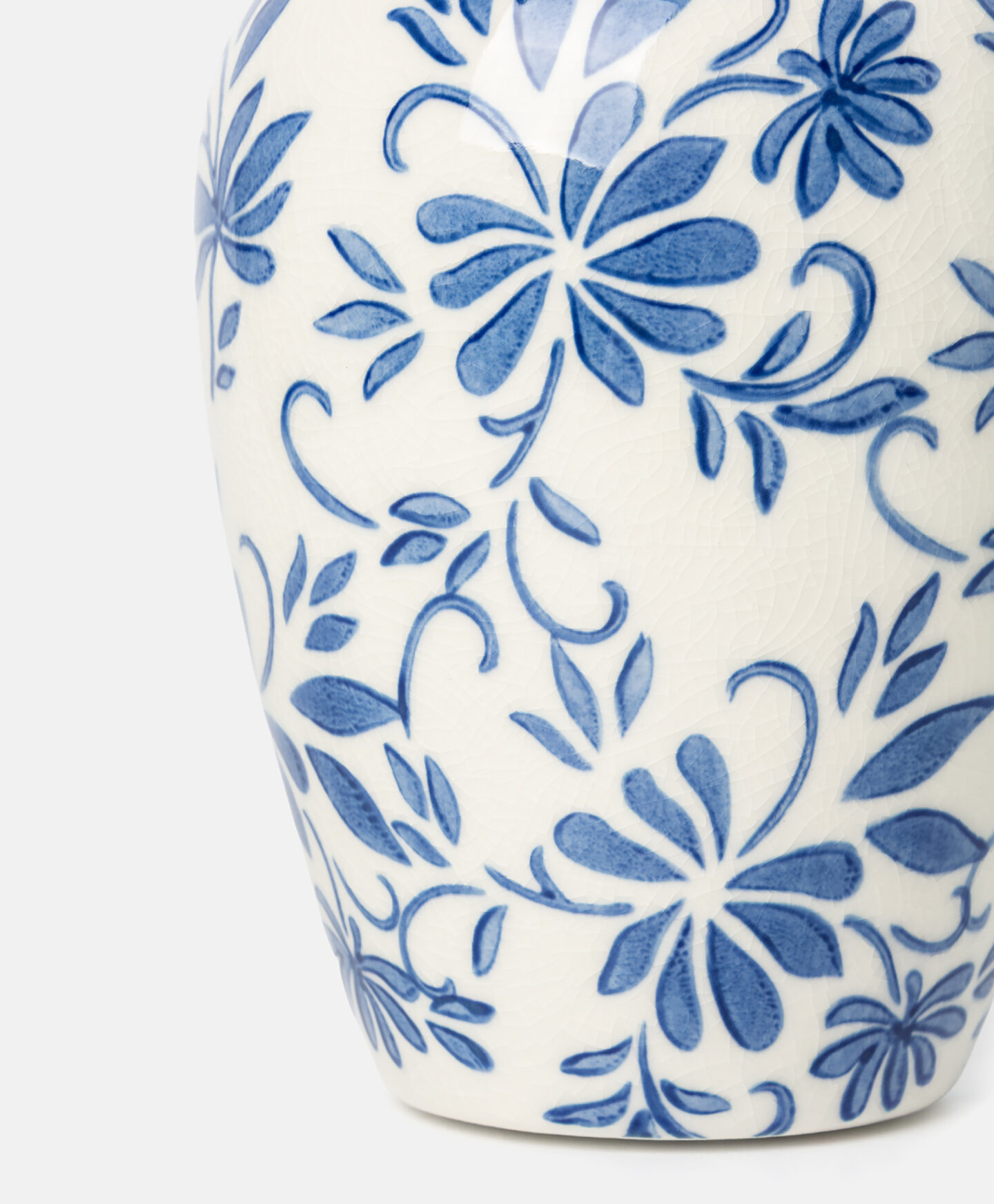 Keramička vaza s uzorkom savršena je za izlaganje svježeg rezanog cvijeća, kao i umjetnih grana. Lijepo izgleda i kao samostalan ukrasni element ili kao dio veće aranžirane kompozicije. Vaza je izdržljiva, jednostavna za održavanje i ukrašena lijepim cvjetnim uzorkom.